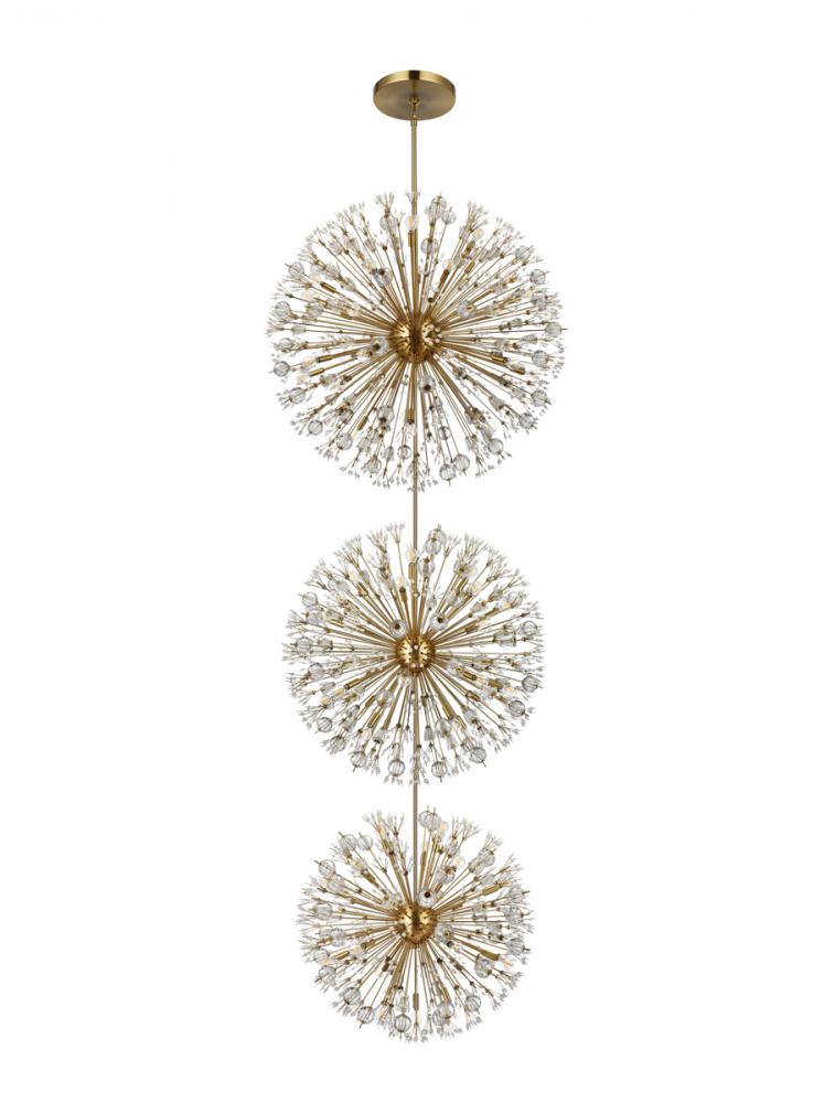Vera 44 inch three tiers crystal starburst chandelier in satin gold