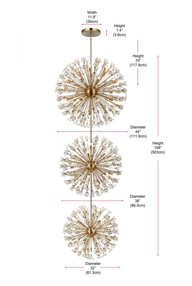 The chandelier is meticulously crafted with attention to detail, ensuring durability and longevity. Each crystal and metal rods are securely fastened to the frame.