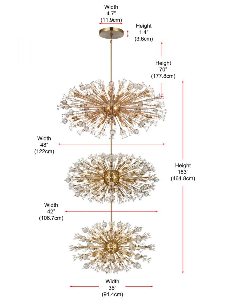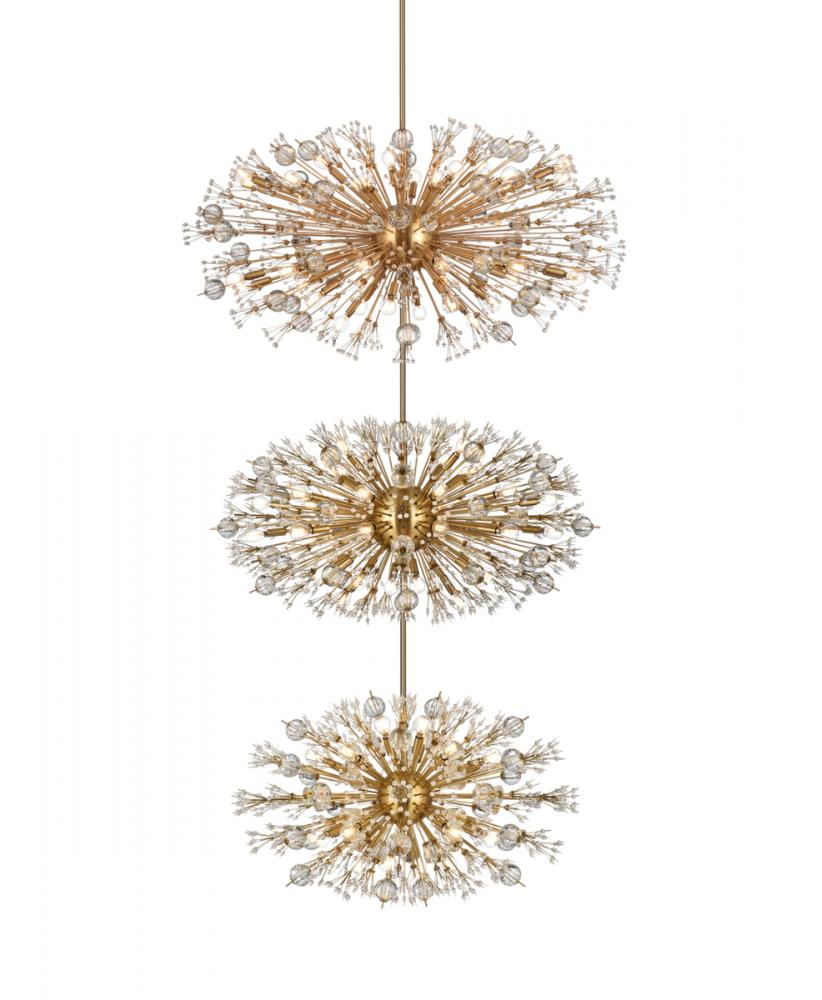Vera 48 inch three tiers crystal starburst chandelier in satin gold