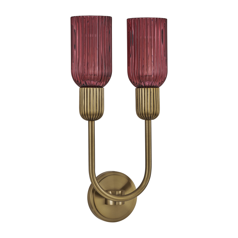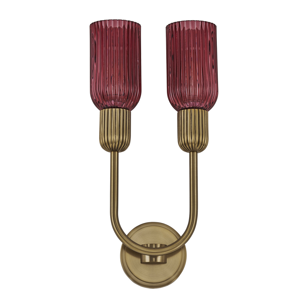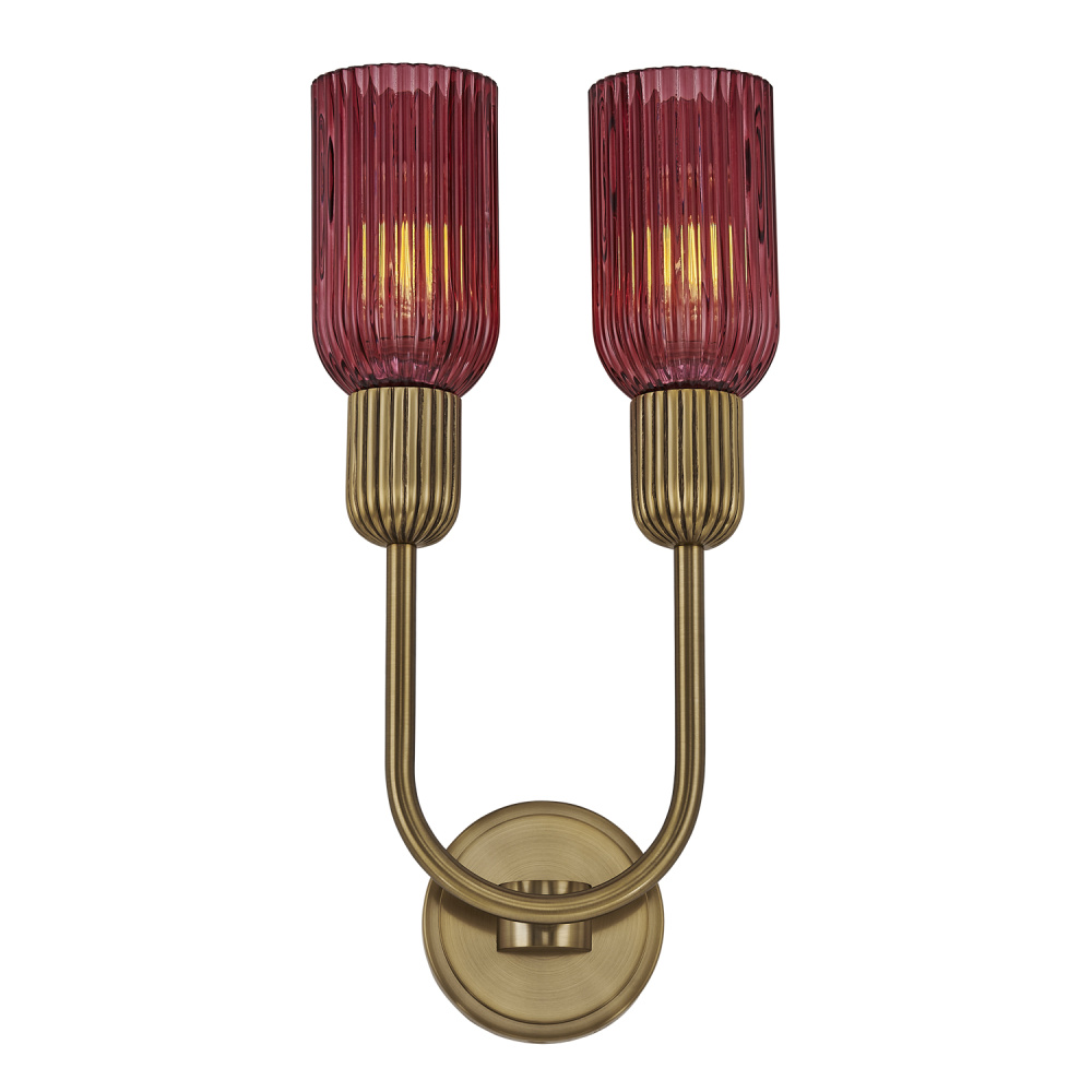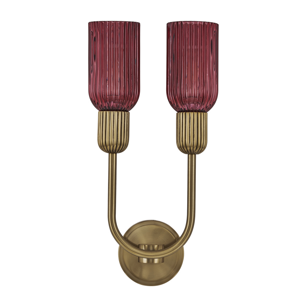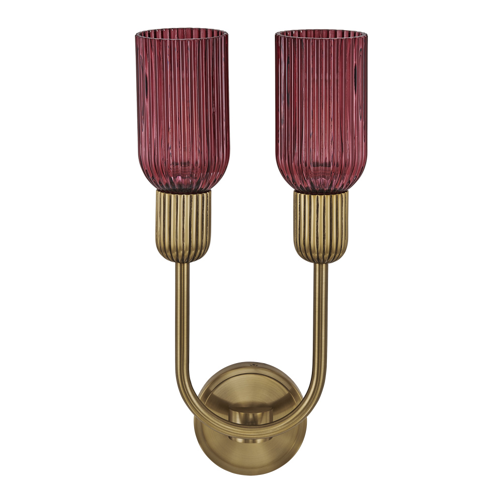 Material: Brass, Steel, Colored GlassFinish: Satin Brass, Magenta Glass
