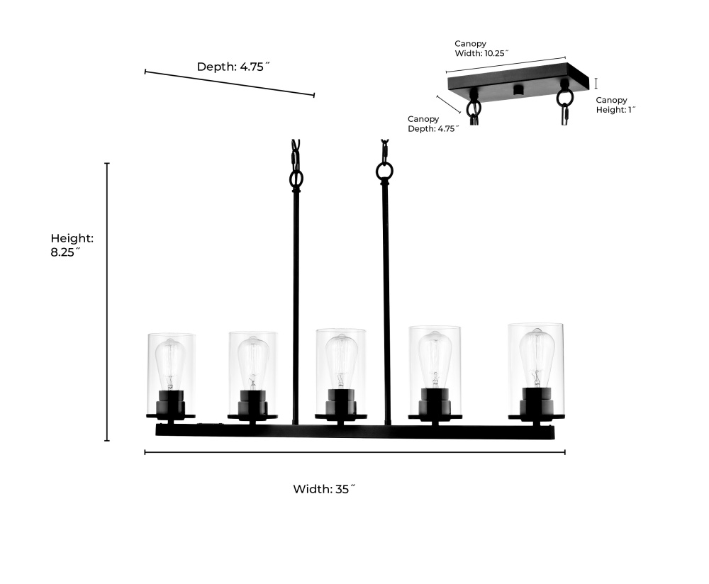 Striking industrial design springs to life with the sumptuous style of the Verlana Collection. Clear glass cylindrical shades perfectly compliment the sleek lines of these luminaires, finished in matte black, chrome, or modern gold. Available as 1-light sconce; 1-light mini pendant; 2-, 3-, or 4-light vanity, 2-light semi-flush mount, 5-light island; or 3- or 5-light chandelier, these fixtures set a sophisticated tone for any interior scheme.