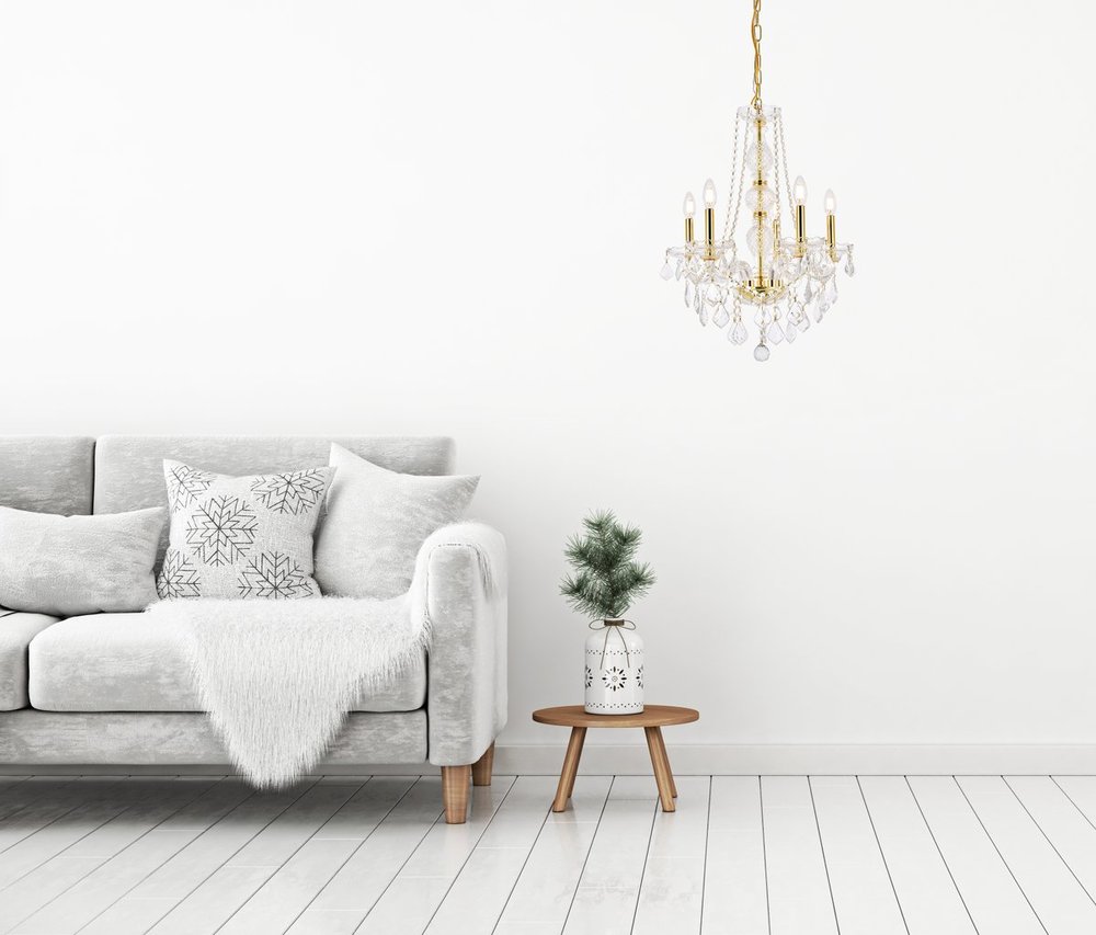 Warm, brilliant light is created by 5 light bulbs. (not included)