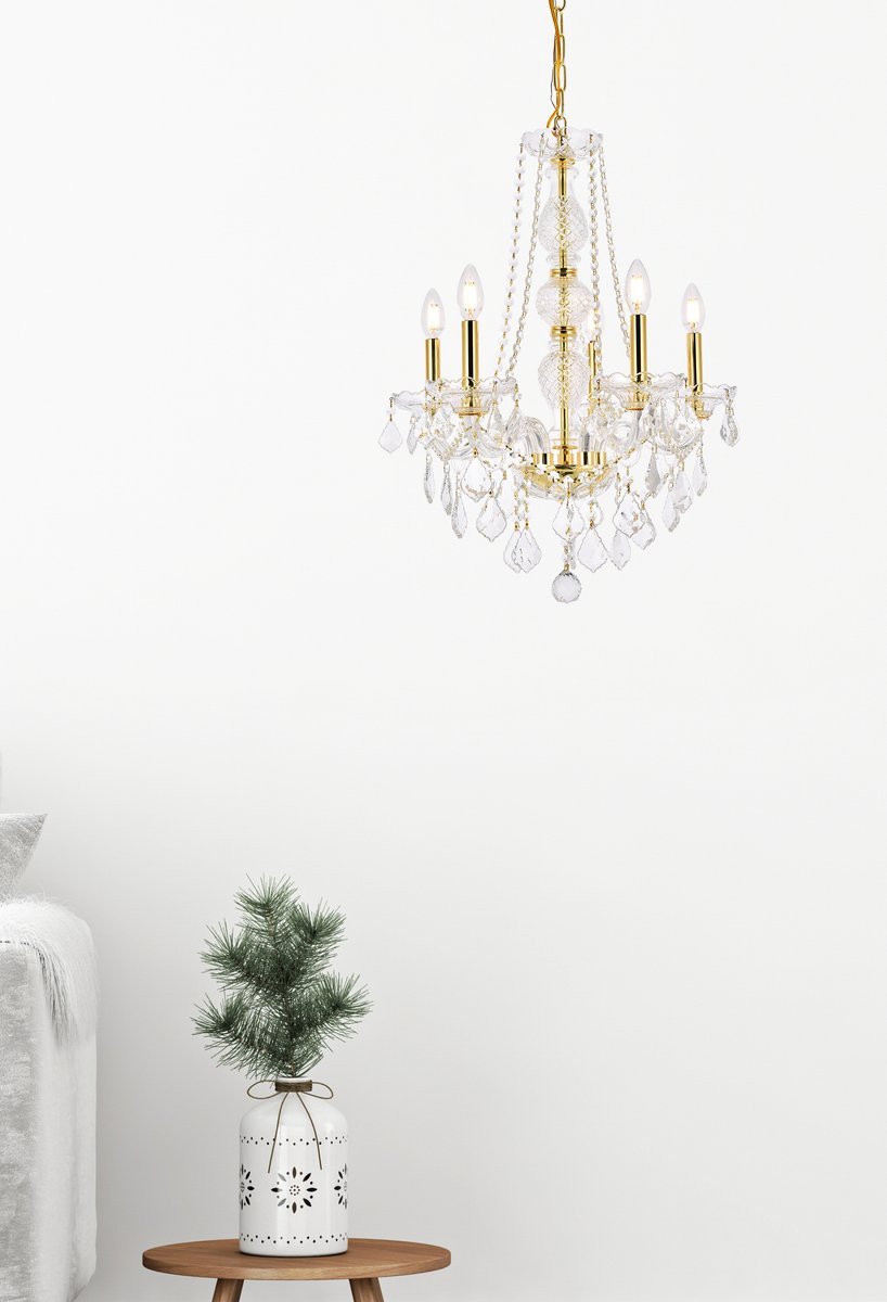 Verona 5 light Gold Chandelier Clear Royal Cut Crystal