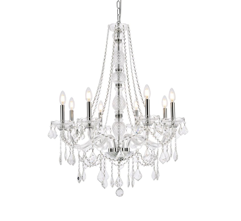 Add an updated version of Old World panache to your décor with an elegant chandelier from the Verona collection. These distinctive fixtures are highlighted by tall, intricate, cut-crystal center columns draped in shimmering cascades of crystal beads. Eight arms capped with candelabra lights (not included) on crystal bobéches complete the visual treat, which also includes festoons of diamond-like crystals, glass rings, and pendeloques. Available with a choice of finishes and types of crystal.