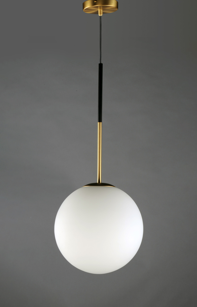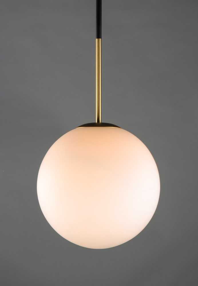 Inspired by both Mid Century Modern and Scandinavian Contemporary this collection spans a large breadth of today's interior design. Straight tubing finished in Satin Brass supports hand blown Satin White cased glass globes. Black accents of metal and B