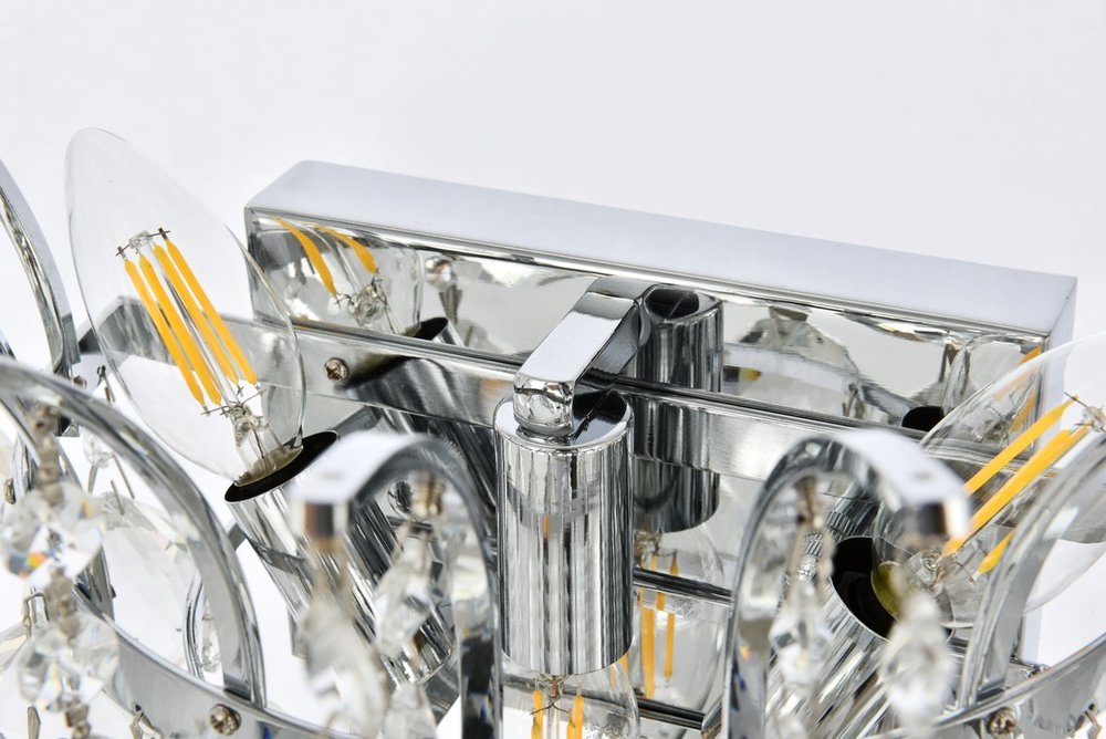 Straight from New York during the Roaring ‘20s, Victoria collection wall sconces are brimming with style and sophistication. The classical design flaunts a pointed center completely covered in gleaming rows of clear crystal balls. Delicate arms dangle crystal octagon strands and matching crystal balls along the top edge of the frame to add harmony and cohesion. Available in a chrome or gold finish, Victoria wall sconces are certain to wow your guests in a hallway, bathroom, or entryway.