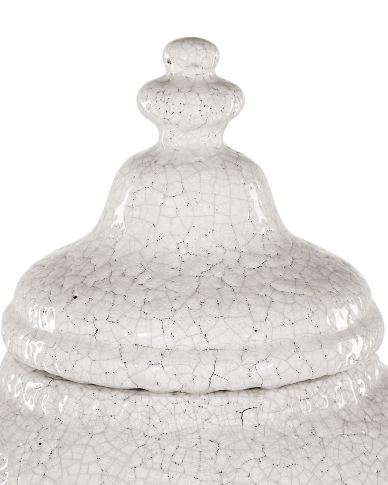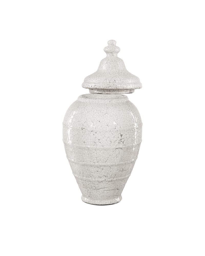 Mimicking the shapes of the terracotta jars that have historically been used for preserving olives in oil, the Virginal Medium Jar is made of terracotta with an antique-white, hand-applied glazing that is so thick and rich it has a crackle surface. The fact that this piece is hand-thrown means the shapes will vary slightly, as will the finish, which will make each of these vessels unique. Anyone who spies them in an interior will be convinced they are timeless antiquities.