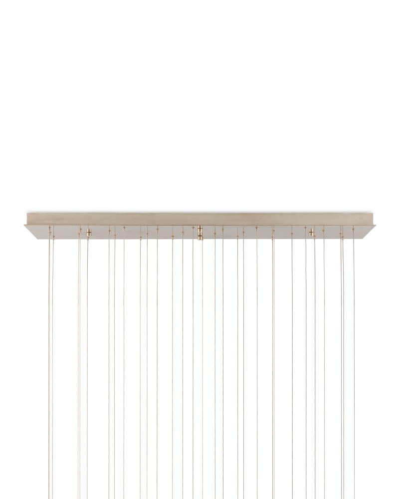 The Virtu 30-Light Rectangular Multi-Drop Pendant has beautifully composed shades around which clamrose shells are fashioned to look like rosebuds; each petal hand-placed to make this an artisanal offering. The way the illumination wafts through the shade and surrounds the shells is a design detail of note with this lovely nature-inspired luminary.
