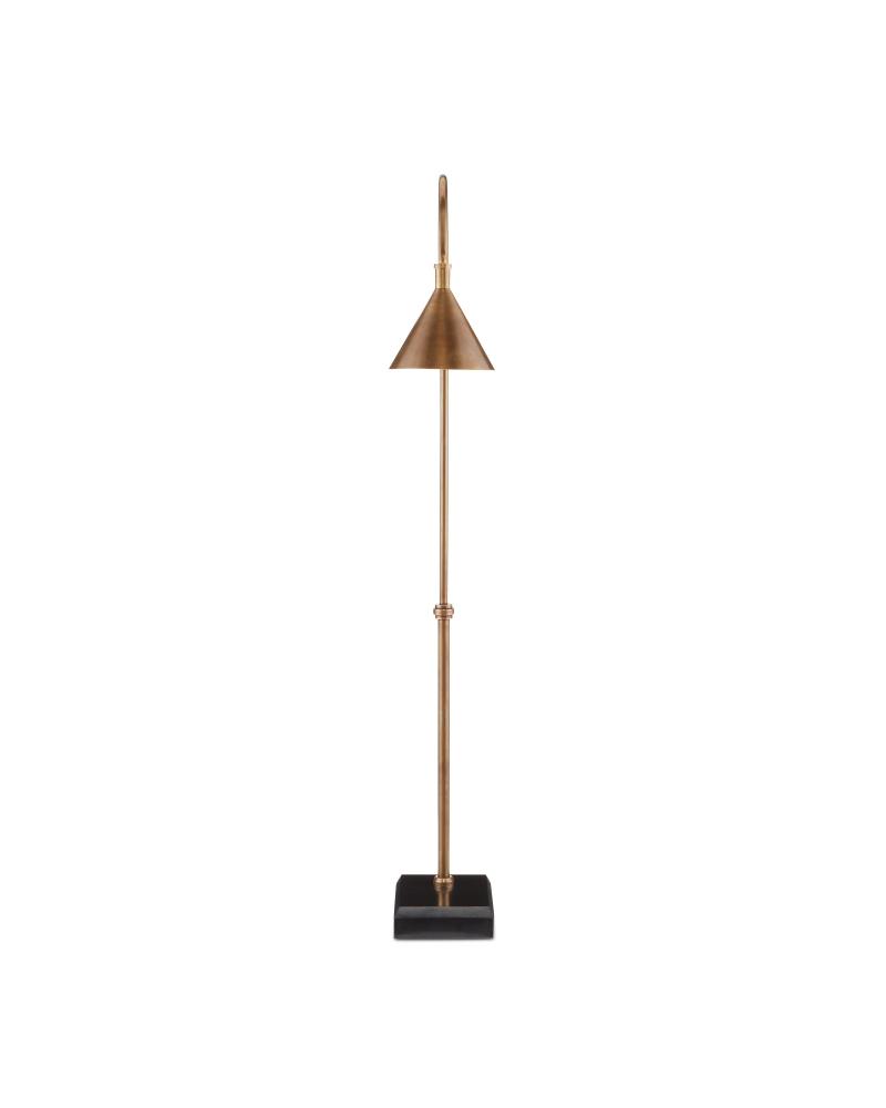 Made of brass in a vintage brass finish, the stem and shade of the Vision Floor Lamp rise from a rectangular black granite base. with the simplest of lines and the ability to shine brightly from behind a comfortable chair or sofa, the gold floor lamp could quickly become a reader's best friend.