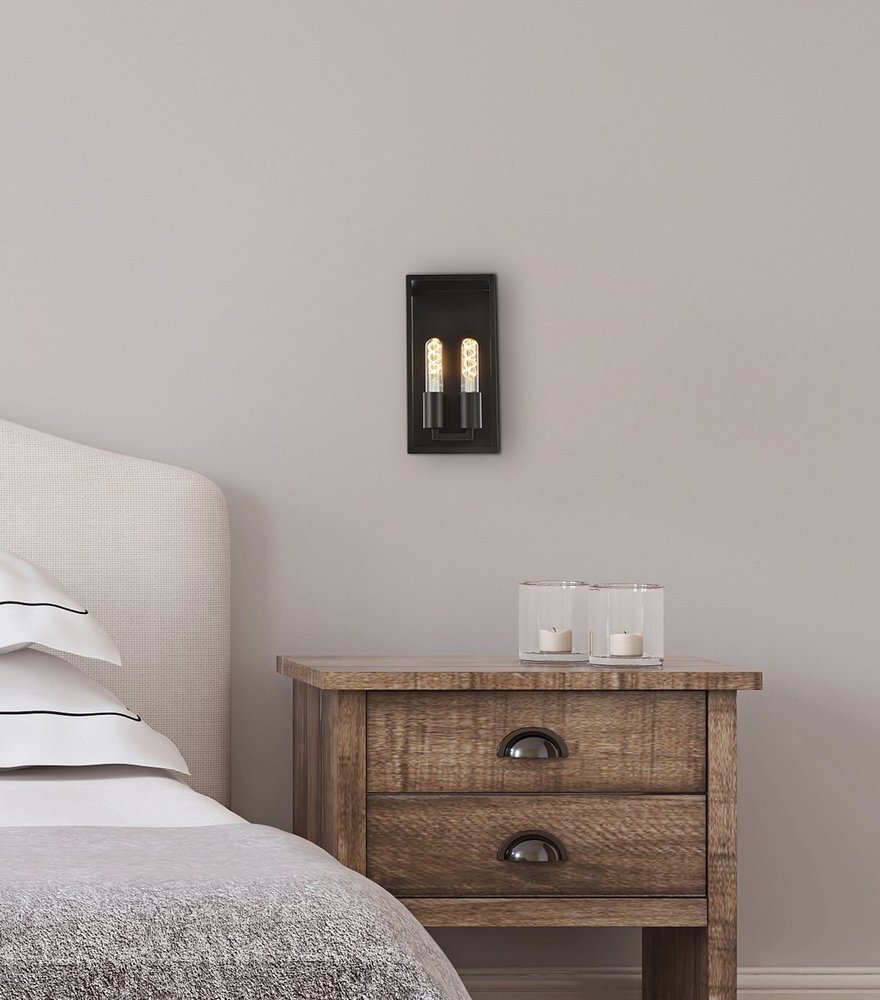 Voir 2 lights wall sconce in black is the perfect fixture to light up the hallway, closet, bedroom, or bathroom. This flush mount will elevate the look of any space.