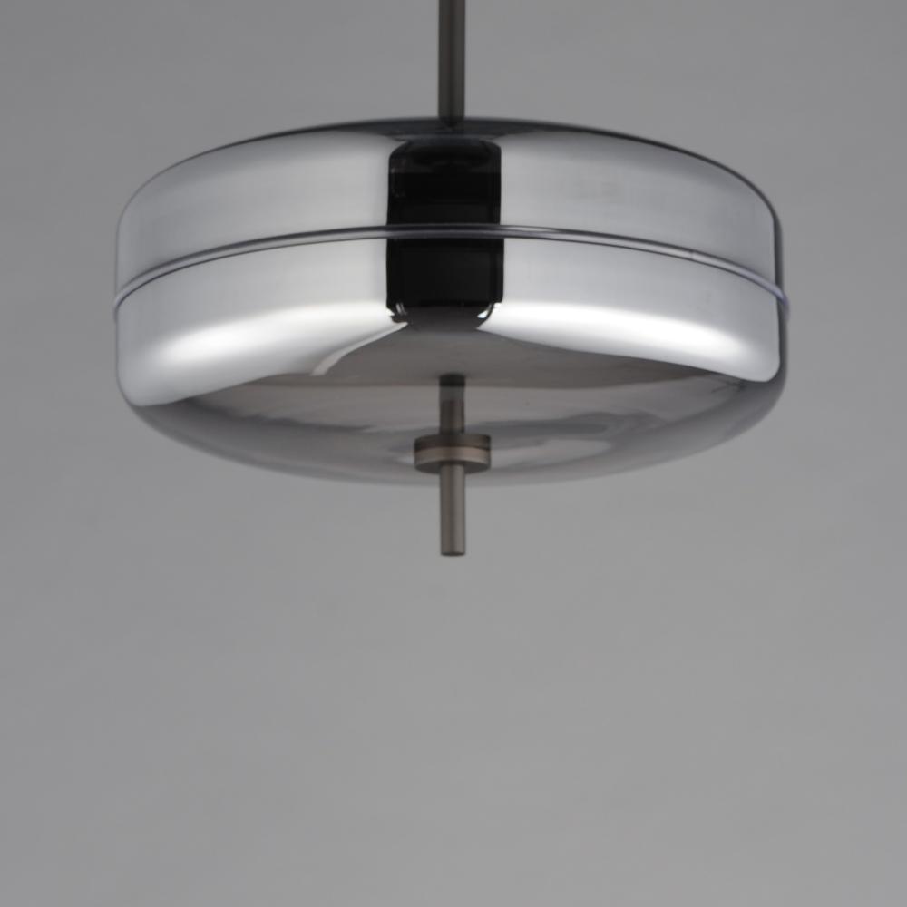 Shallow glass domes encase edge-lit LED panels, creating a captivating play of light that highlights the void within each fixture while delivering evenly distributed illumination both upwards and downwards where applicable. A meticulously crafted frame con