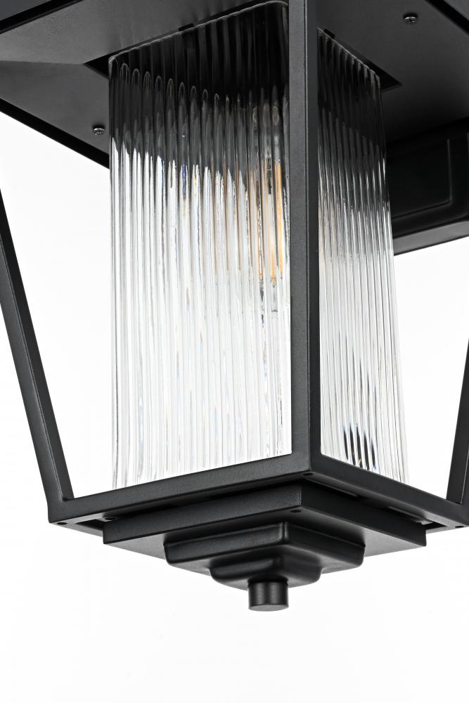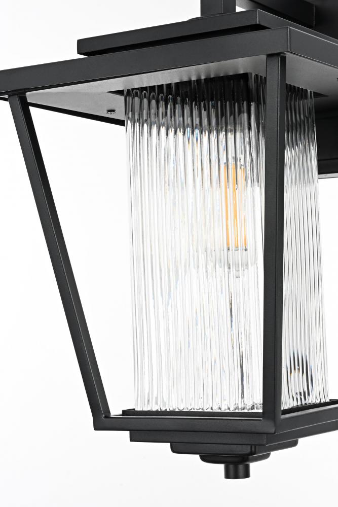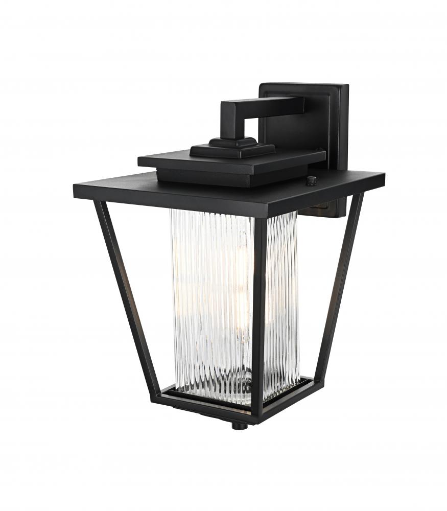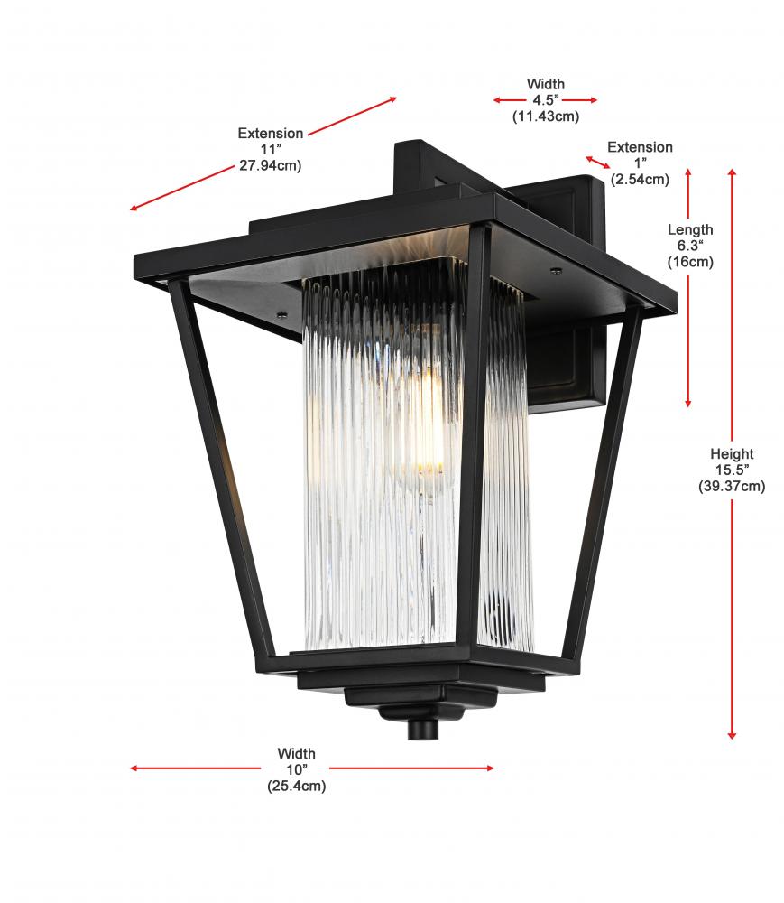 Add a touch of modern industrial flair to your home's exterior with this outdoor wall sconce. Featuring a matte black iron frame and ribbed glass panels, this sconce brings a sophisticated yet understated charm to your outdoor decor. The ribbed glass diffuses light softly, providing an inviting glow that's perfect for illuminating patios, doorways, or garden paths. Built to withstand the elements, this wall sconce is as durable as it is stylish, ensuring a reliable lighting solution for years to come. with its straightforward installation process, this light is a simple yet impactful way to upgrade your outdoor space.