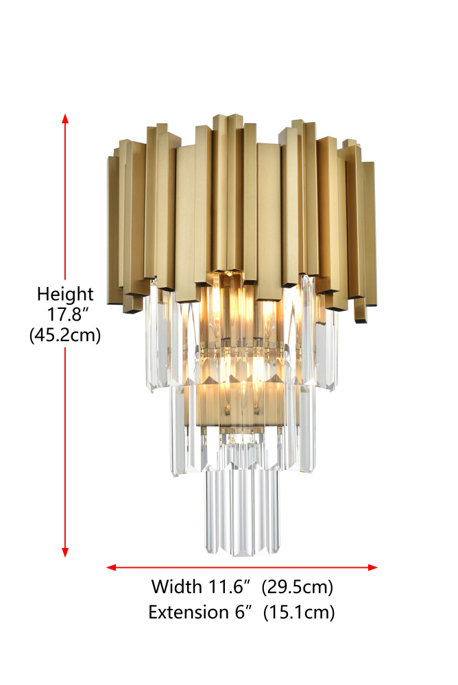 Elevate your walls with the bold and captivating design of this modern wall sconce. Its staggered arrangement of iron and clear glass elements creates a striking geometric form that plays beautifully with light, refracting it into radiant patterns that transform your space into an illuminated masterpiece. The clear glass adds dimension and depth, while the metal framework provides a strong, architectural presence. Available in satin gold, chrome, or black finishes, this wall sconce adapts to any décor, whether adding warmth, sleekness, or contrast. Compact yet impactful, it’s perfect for hallways, entryways, or as a statement piece beside mirrors or artwork. Fully dimmable, this sconce allows you to tailor the lighting to fit any mood or occasi