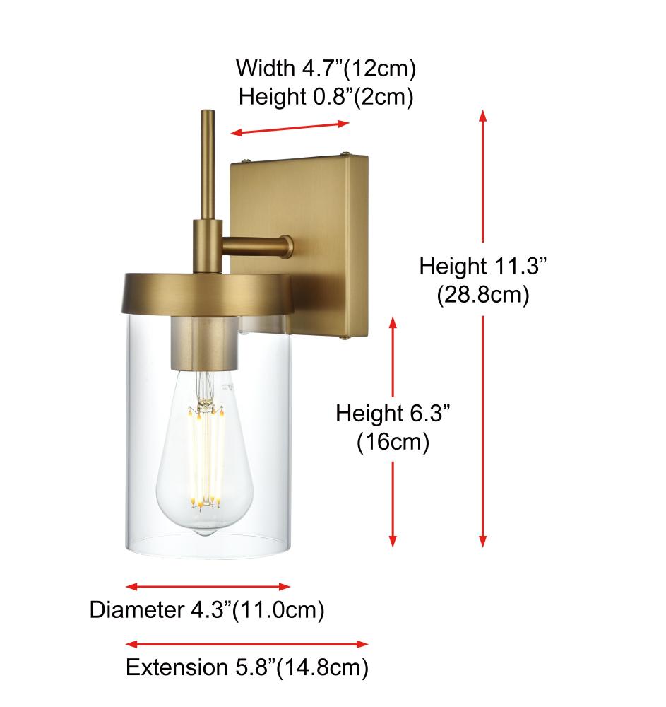 Enhance your home with this stylish wall sconce that brings together modern design and versatility. Available in four eye-catching finishes—Satin Gold, Black, Brass, and Chrome—this wall sconce is crafted to seamlessly blend with any decor style. The clear cylindrical glass shade provides a clean, contemporary look while allowing the light to shine fully, making it perfect for illuminating any space. The straight arm and bold square backplate add a sleek and modern character to the fixture, making it an ideal addition to any room. Whether you choose to install it facing up or down, this sconce offers flexibility and customization for your lighting needs. The E26 socket (bulb not included) gives you the option to personalize the look by selecting the bulb that best matches your desired ambiance—whether it’s a vintage filament bulb for a classic vibe or a modern LED for energy efficiency. Bring this versatile piece into your bathroom, hallway, living room, or bedroom to add a touch of modern style and practical lighting.