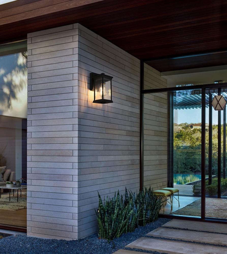 Featuring rippled water glass panels, this wall sconce not only provides functional illumination but also enhances the look with interesting light reflections and patterns, adding a layer of depth to your outdoor spaces.