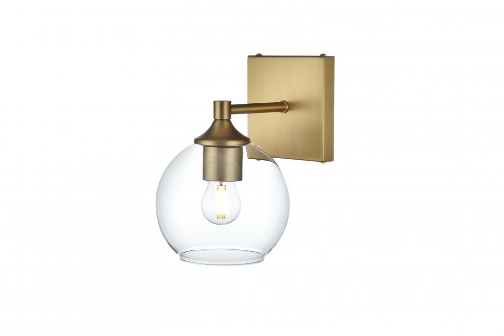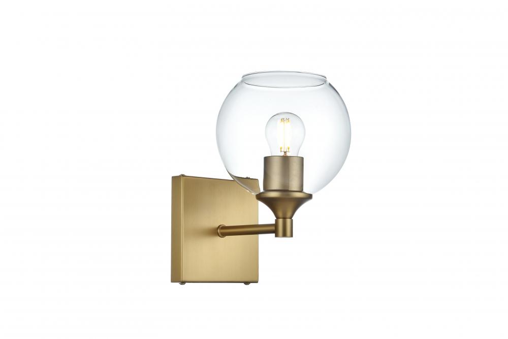 Transform your space with this versatile and contemporary wall sconce. Available in four stunning finishes—Satin Gold, Black, Brass, and Chrome—this fixture makes it easy to elevate the look of any room, from modern to traditional. The clear glass globe showcases the beauty of the bulb, creating a dynamic and open design that works as well in a bathroom as it does in a bedroom or living space. The clean lines of the minimalist arm and square backplate make this sconce a statement piece that adds character without overwhelming your decor. Designed with versatility in mind, it can be installed facing up or down, allowing you to tailor the light to suit your needs. The E12 socket provides the freedom to choose the perfect bulb, letting you control the ambiance from bright and energizing to soft and cozy. Add this wall sconce to your space for a perfect blend of style, functionality, and character.