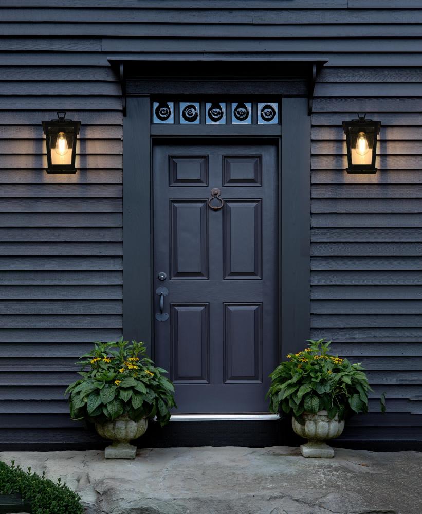 The sophisticated matte black finish offers versatility and elegance, making this sconce suitable for a wide range of exterior styles.