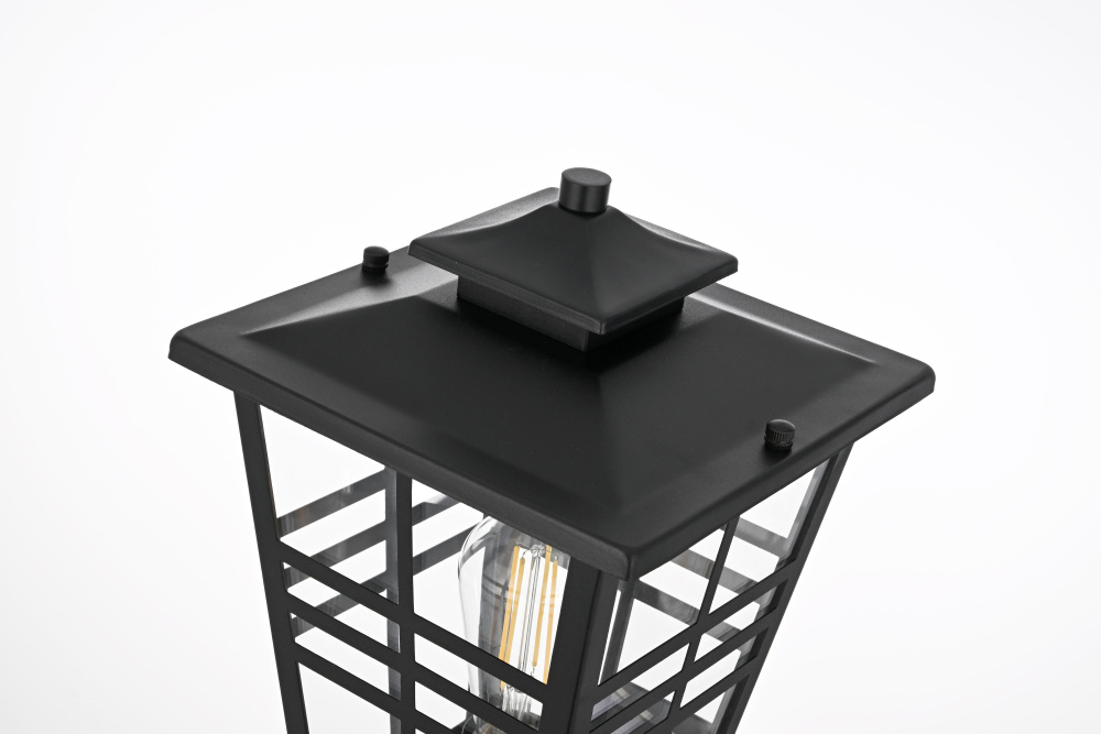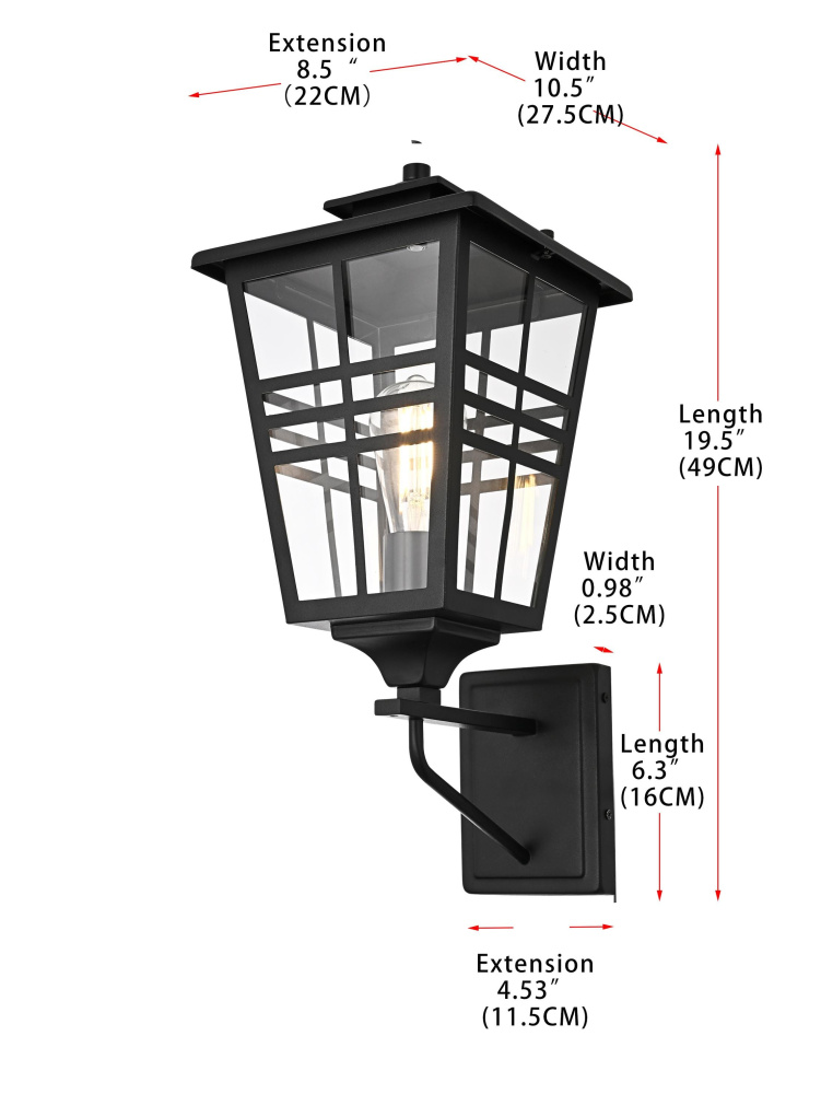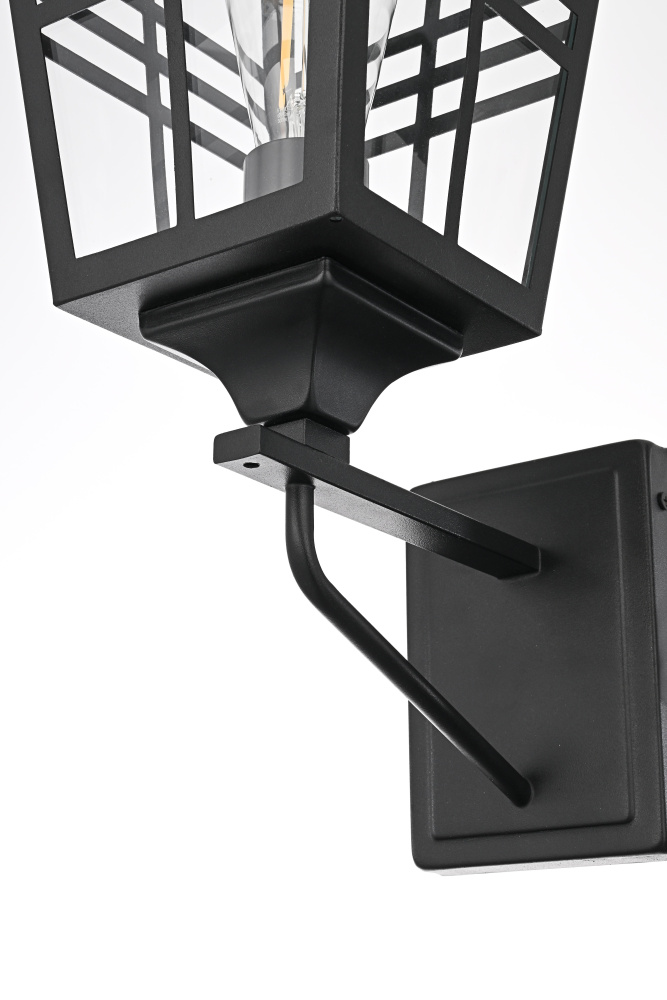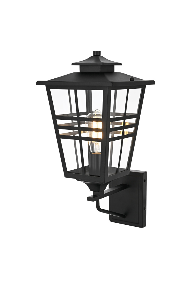 Add a welcoming glow to your outdoor spaces with this timeless lantern-style wall sconce. Inspired by traditional craftsman designs, this sconce features a durable iron frame paired with clear glass panels to provide excellent illumination. The matte black finish complements any exterior decor, adding a stylish yet functional touch to your entryway, patio, or garage. Each bulb socket is rated for up to 60 watts, providing ample illumination to brighten entryways, patios, and porches. The grid detailing on the clear glass panels enhances the overall aesthetic while delivering a bright and comforting glow. Built to withstand outdoor elements, this wall sconce is both practical and visually appealing, perfect for illuminating your home's exterior with style and efficiency.