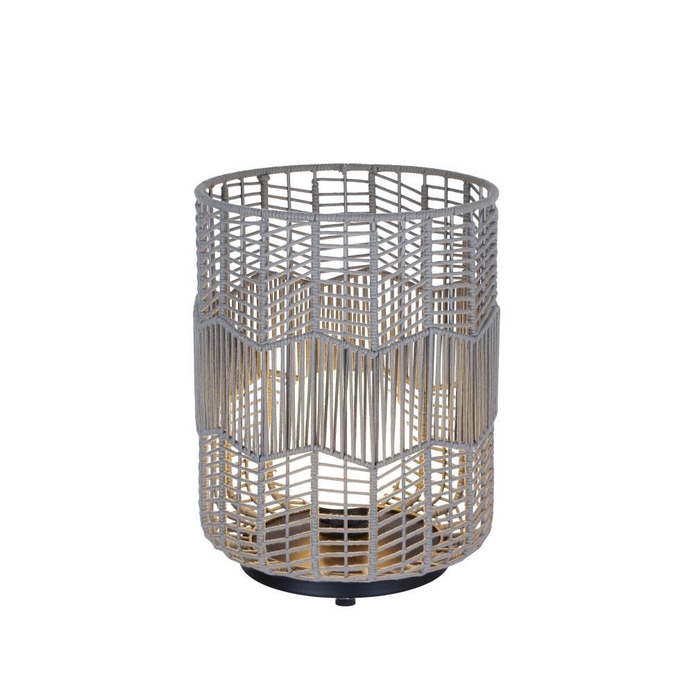 The wallis accent lamp is part of the new outdoor portable and pendant collections. The lamp is wet rated with a powder coated finish. The light is nicely diffused through the weaved grey cord. This accent lamp is a beautiful addition of an outdoor porch or sun room as well as can be used indoors.