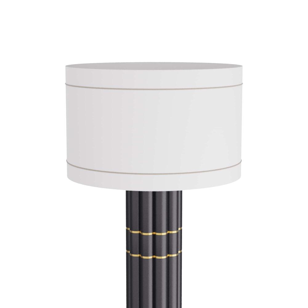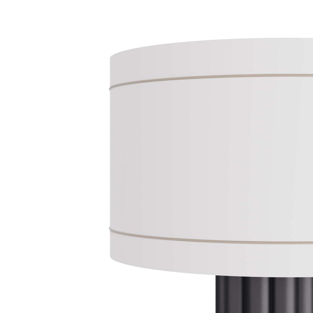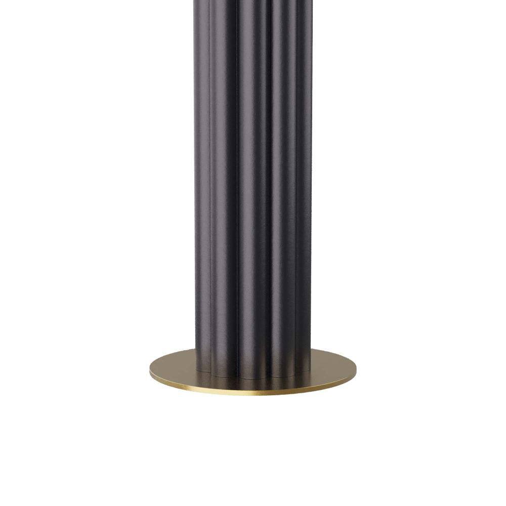 AT HOME IN MODERN OR TRADITIONAL ENVIRONMENTS ALIKE, OUR WARNER FLOOR LAMP IS CRAFTED AS IN A CLUSTER OF REED SHAPES FORMING A SCALLOPED COLUMN IN BLACK RESIN. BANDS OF HIGH-CONTRAST ANTIQUE BRASS STEEL EMBELLISH THE COLUMN, ALSO FORMING THE DISC BASE. THE STATELY LAMP IS DETAILED WITH AN ANTIQUE BRASS SPHERE FINIAL AND A TAPERED OFF-WHITE LINEN SHADE LINED IN OFF-WHITE COTTON. FINISH WILL VARY.