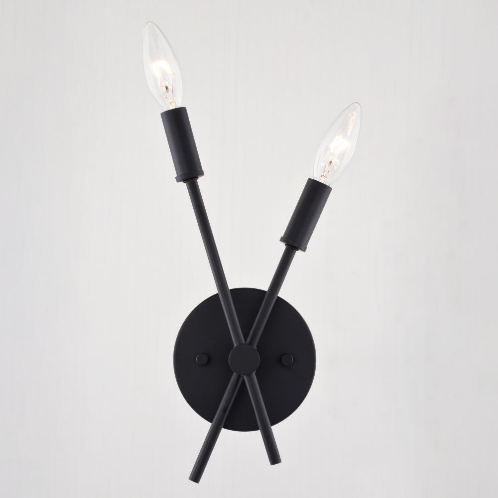 Add a touch of contemporary style to your space with the Warwick wall light. Its matte black finish and criss-cross two light design creates a sophisticated yet simple look. Perfect for bathrooms, living rooms, bedrooms, or hallways.