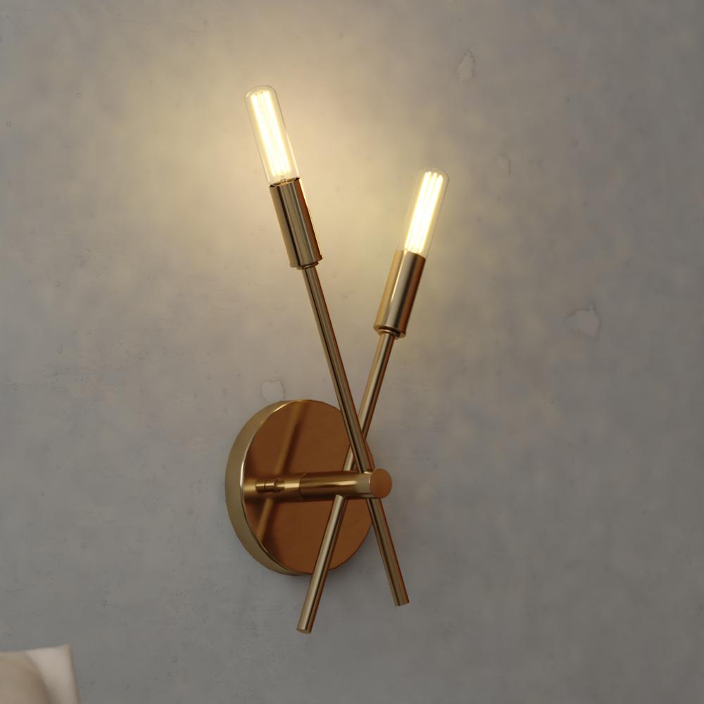 Add a touch of contemporary style to your space with the Warwick wall light. Its natural brass finish and criss-cross two light design creates a sophisticated yet simple look. Perfect for bathrooms, living rooms, bedrooms, or hallways.