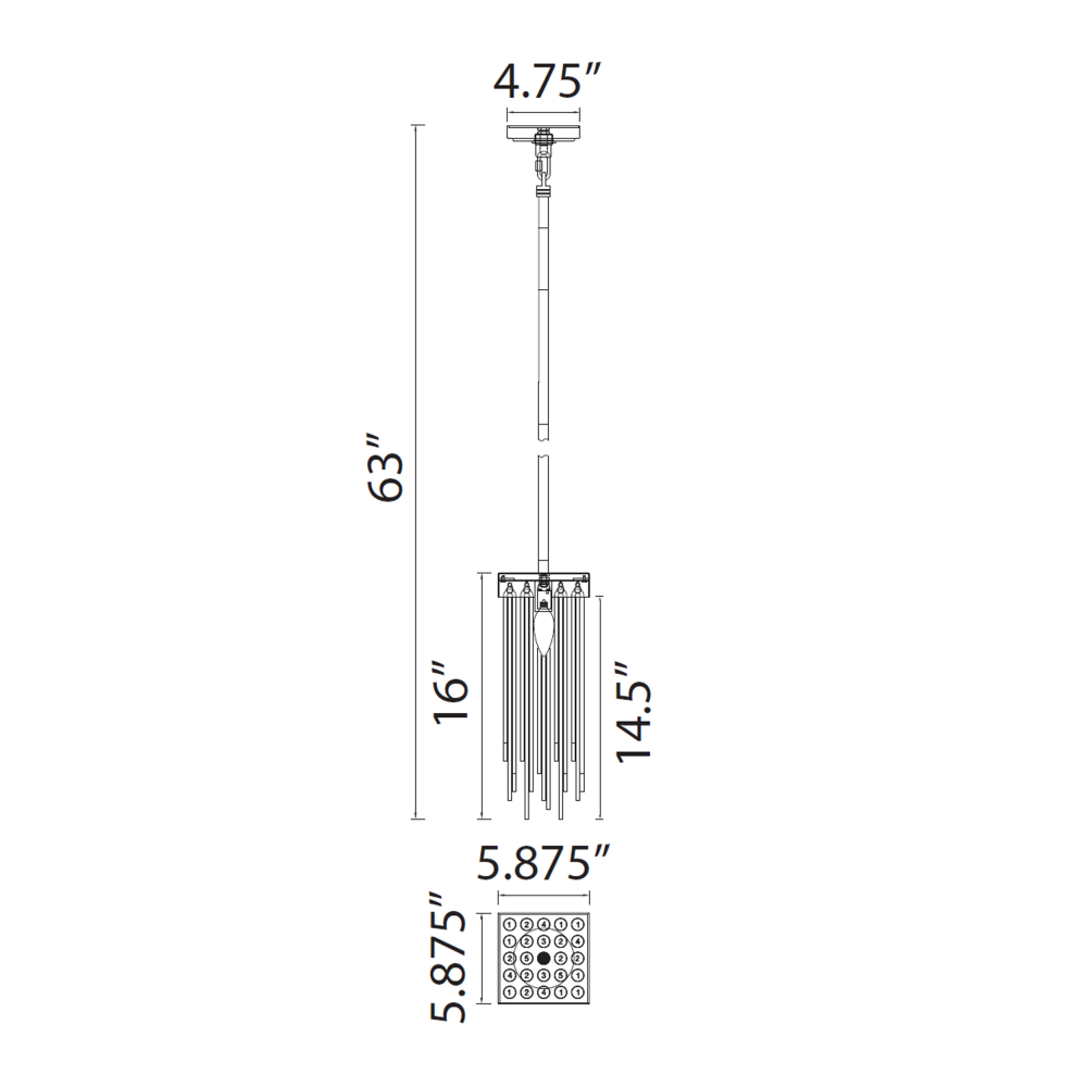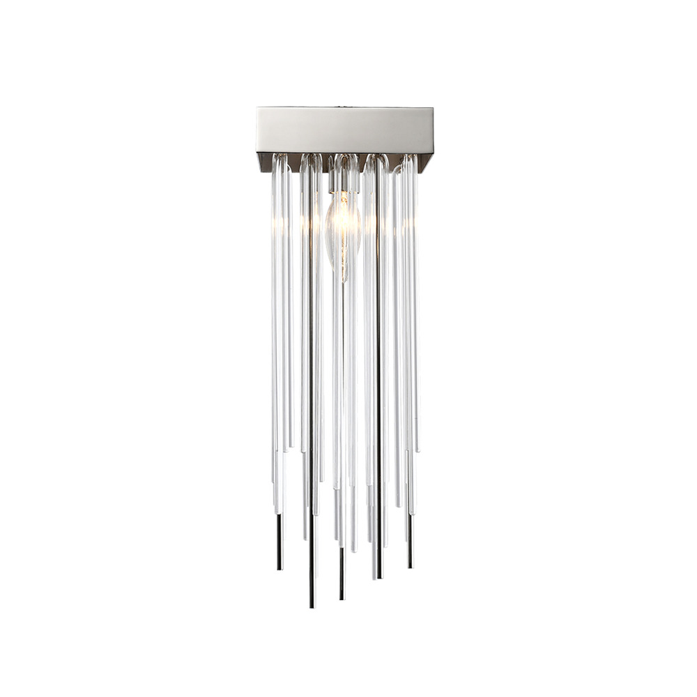 1-Light 6" Square Waterfall Crystal Mini-Pendant Light with Multi-Sized Clear Curved Crystal Stems combined with Solid Metal Stems. Refined Metal Details with our Luxurious Polished Nickel Finish and Flush Mount Convertible.