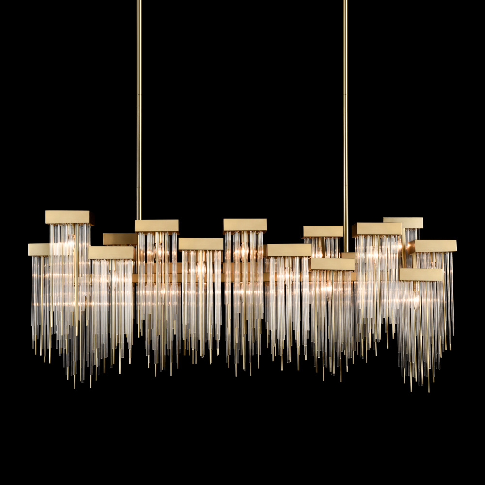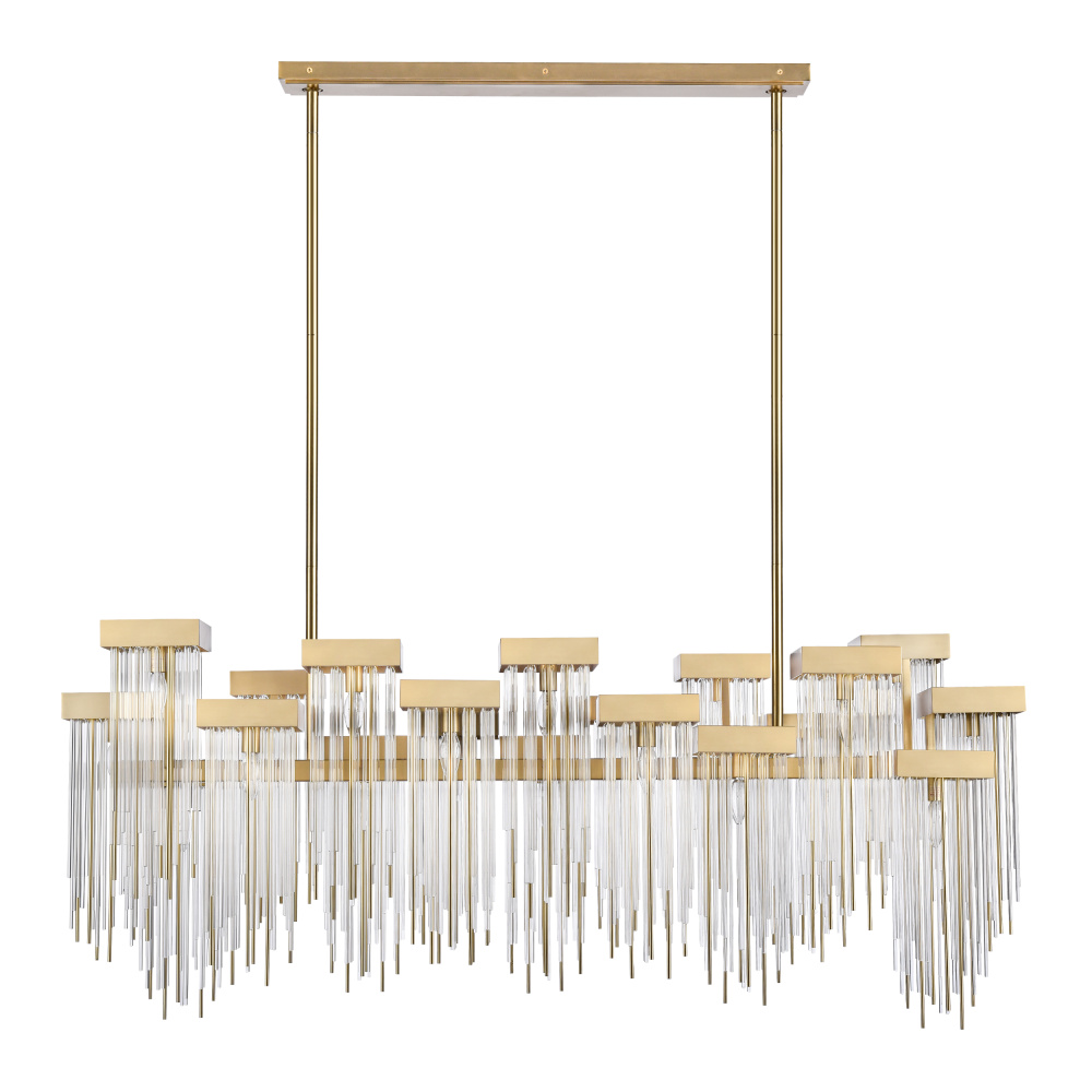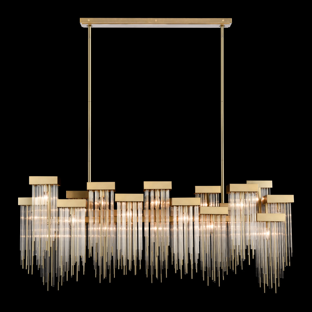 Waterfall 60" 20-Light, Cityscape Glass Chandelier in Aged Brass