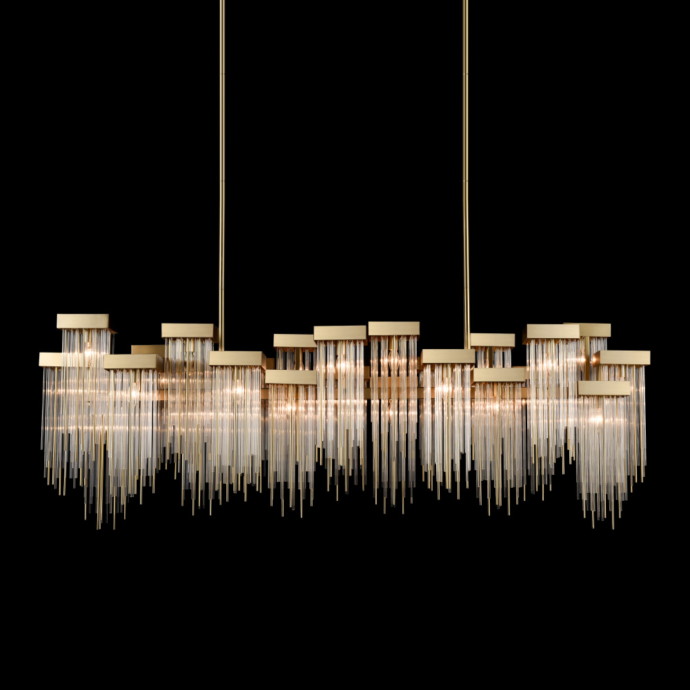 Waterfall 72" 24-Light, Cityscape Glass Chandelier in Aged Brass