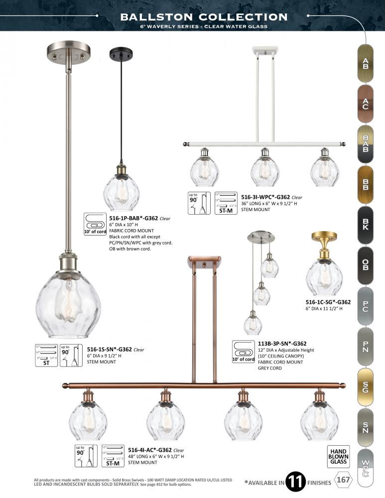 The Ballston collection is comprised of heavy cast components that give the fixture a sturdy contemporary look. We offer the fixture in 11 finishes with a Bare Bulb look or with over 100 possible metal and glass shade options that can change the style to f