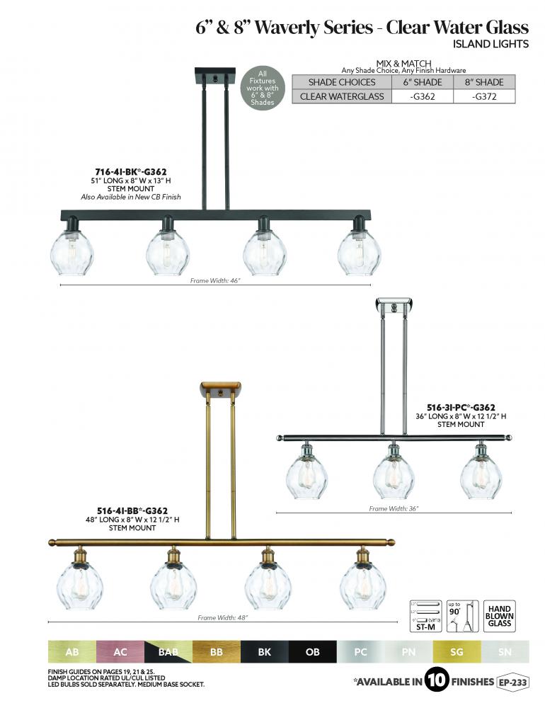 Waverly - 4 Light - 49 inch - Antique Copper - Clear shade - Stem hung - Island Light