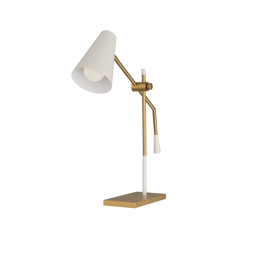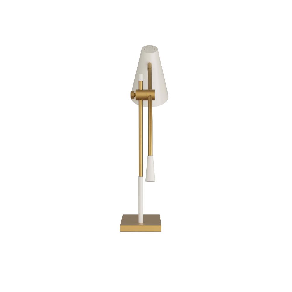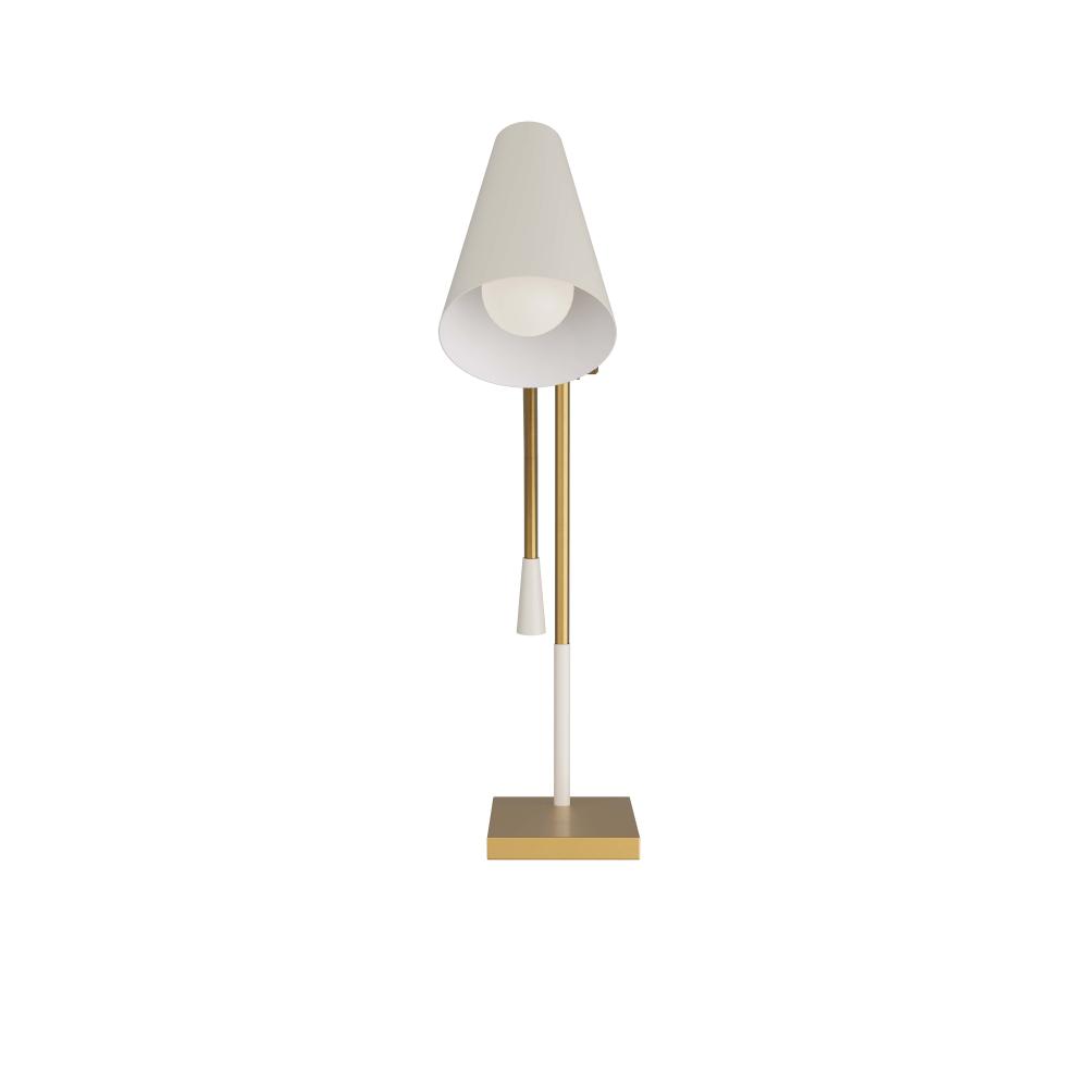 OUR WAYNE SUSPENSION TASK LAMP IS DESIGNED WITH A CONICAL SHADE IN MATTE CREAM ENAMEL AND AN ARTICULATING BRASS STEEL ARM. THE MOD ILLUMINATOR IS ACCENTED WITH MATCHING CREAM ENAMEL, WHICH CAPS THE END OF THE ARM AND ENCIRCLES THE LAMP’S TUBULAR FRAME AT THE TOP AND AT THE BASE. THE SHADE PIVOTS, CASTING DIRECTIONAL LIGHT WHERE YOU NEED IT.