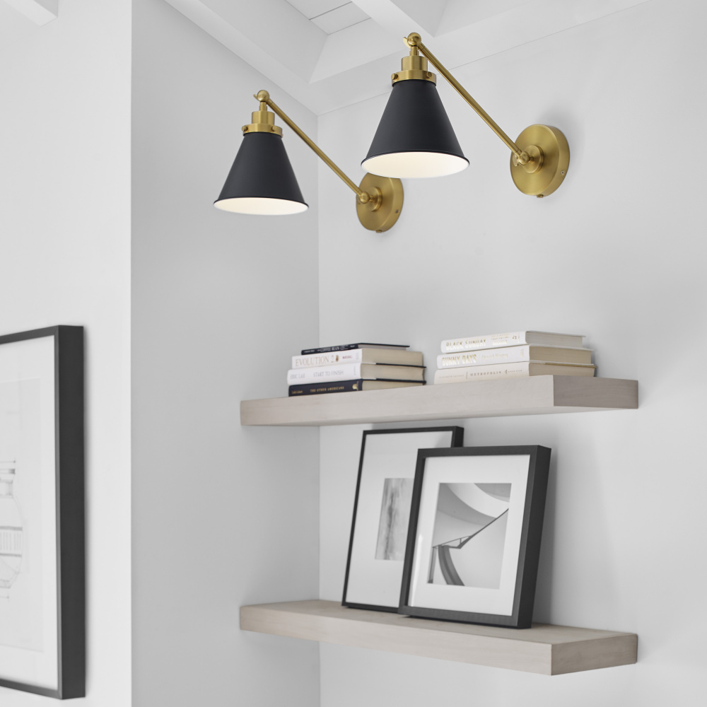 Available in four finish combinations: Matte White with Burnished Brass or Polished Nickel and Matte Black with Burnished Brass or Polished Nickel