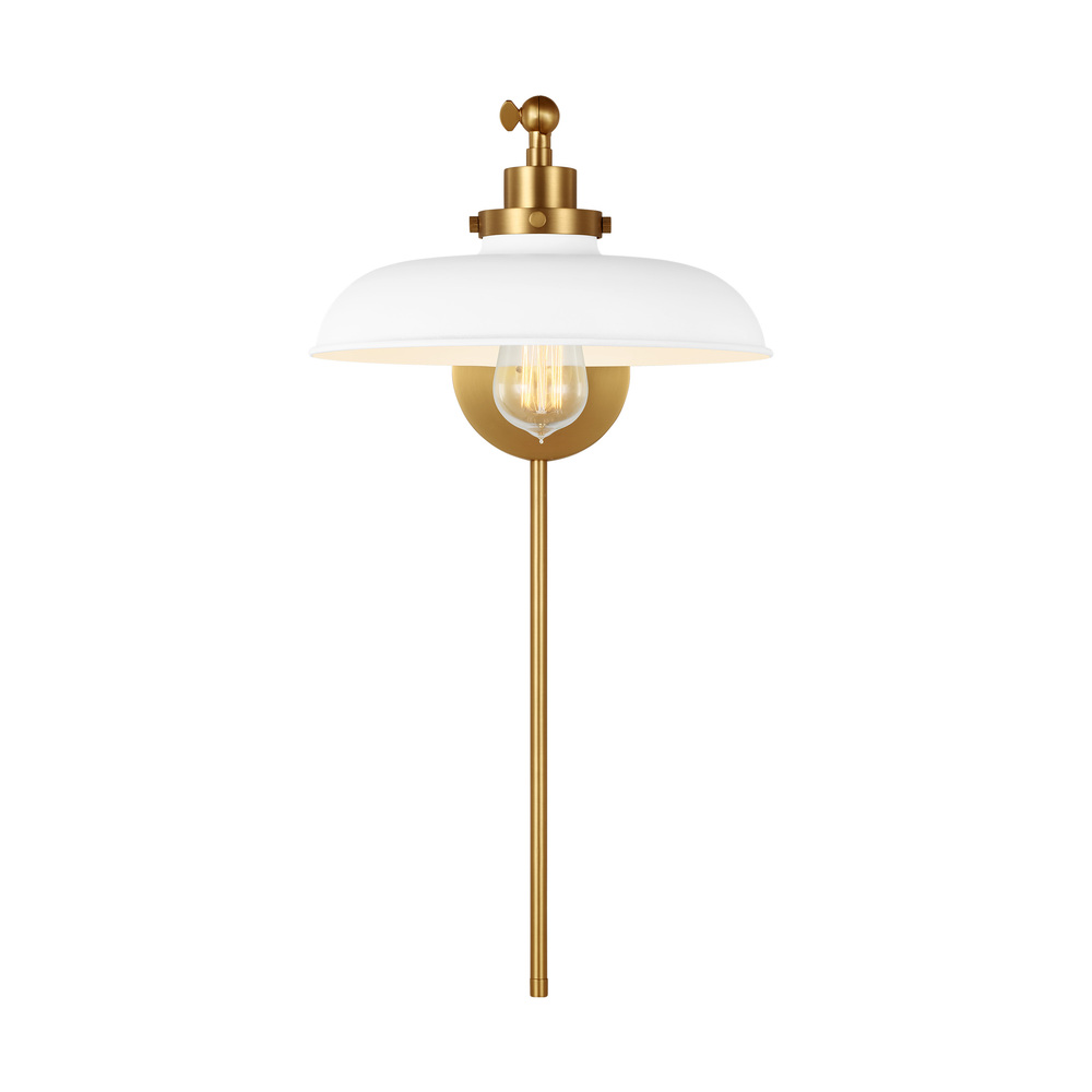 The simple industrial-inspired Wellfleet wide single arm sconce features a metal wide shade that will tie into a number of design aesthetics