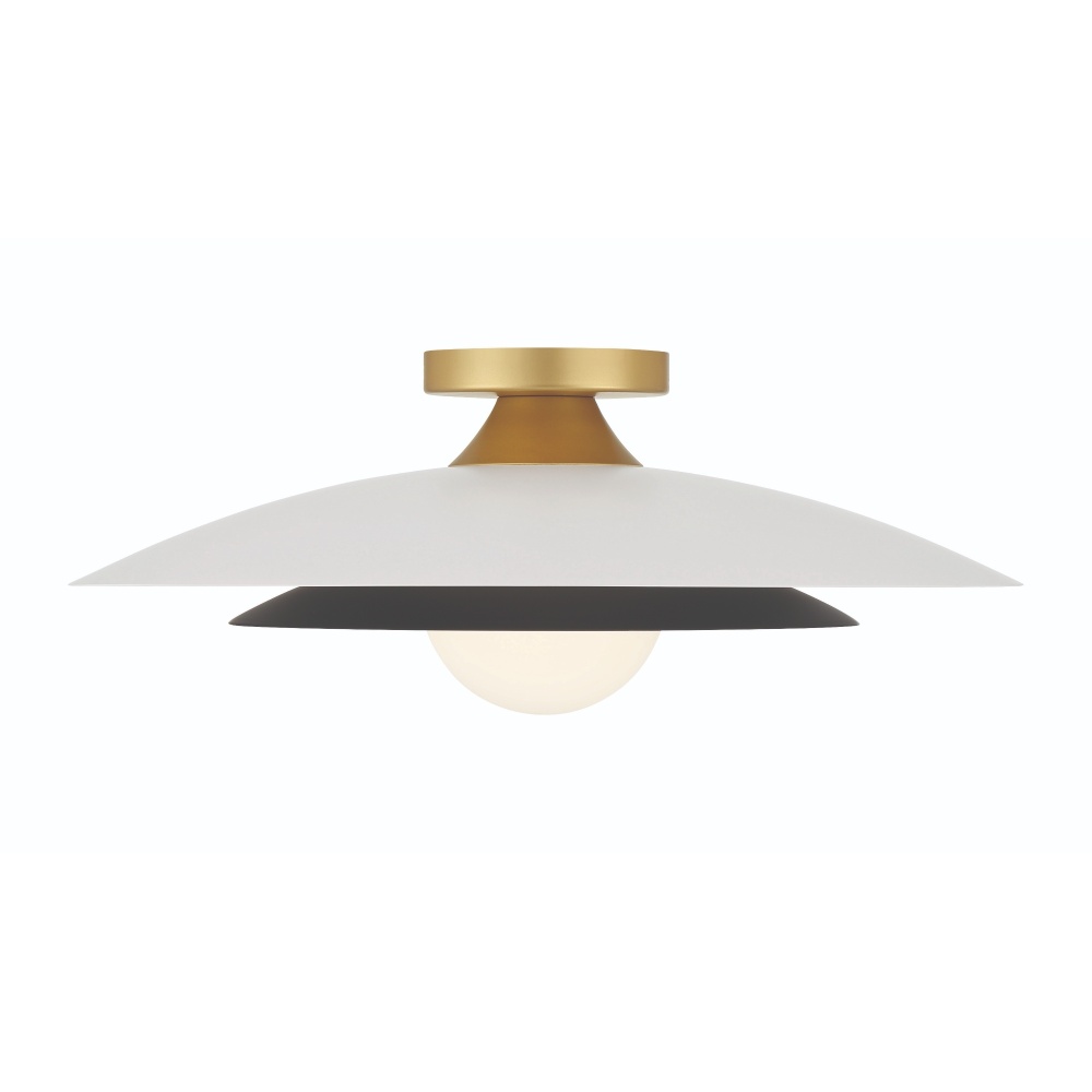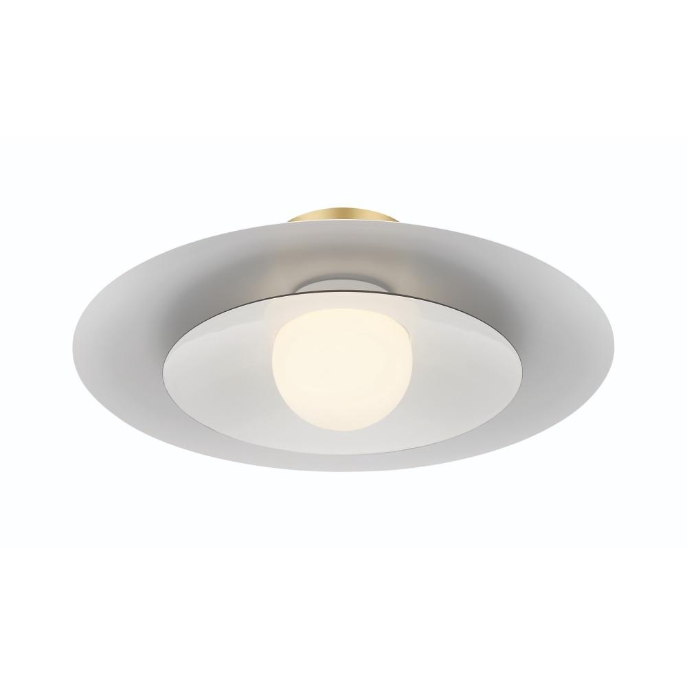 Stacks of multiple metal discs are a halmark of classic deco and modern flush mount design. Blending these shapes with trending finishes and illuminating white opal glass with led, makes the welsh collection an artistic focal point to any decor setting.