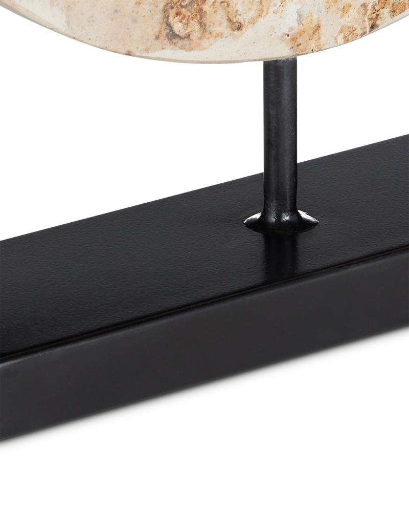 The Wes Marble Disc is a textural marvel. The pitting and mottling of the natural stone make the tan sculpture feel like a fossilized artifact, while the simplicity of the black metal base furthers the feel that this stone disc is museum-worthy. Because the personality of each slice of stone varies, each of these decorative accessories will be unique.
