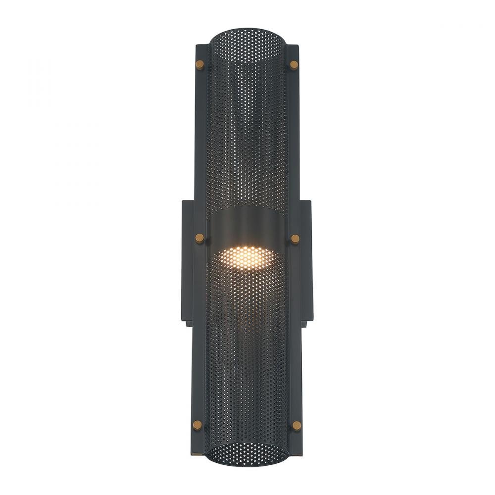 Blending into the night, westcliffe disappears into an exterior surface, then casts light up, down and outward in soft ambiance . When viewed in the daylight, perforated surfaces and brass accents are exacting definers of industrial sophistication.