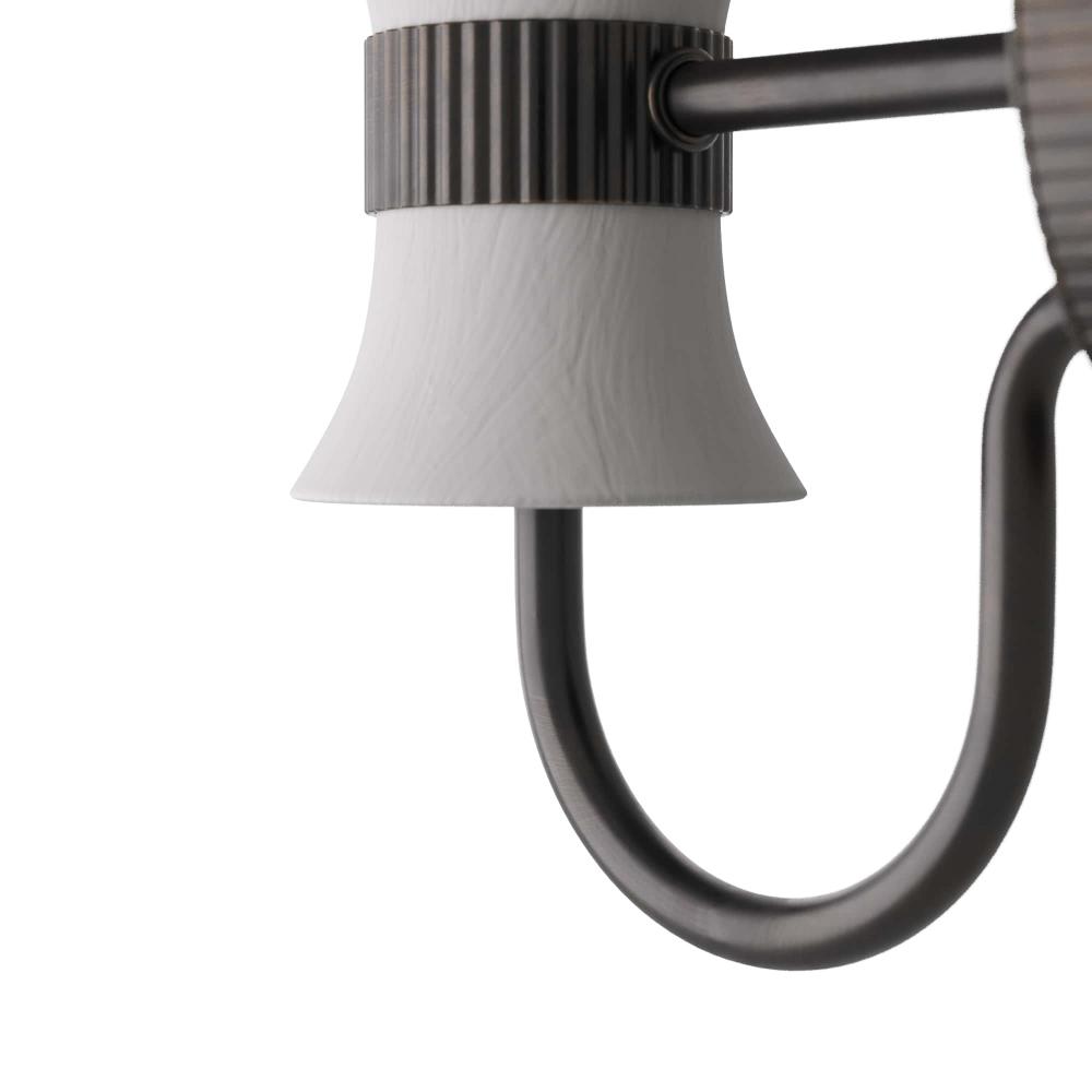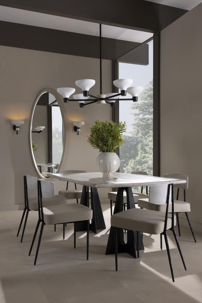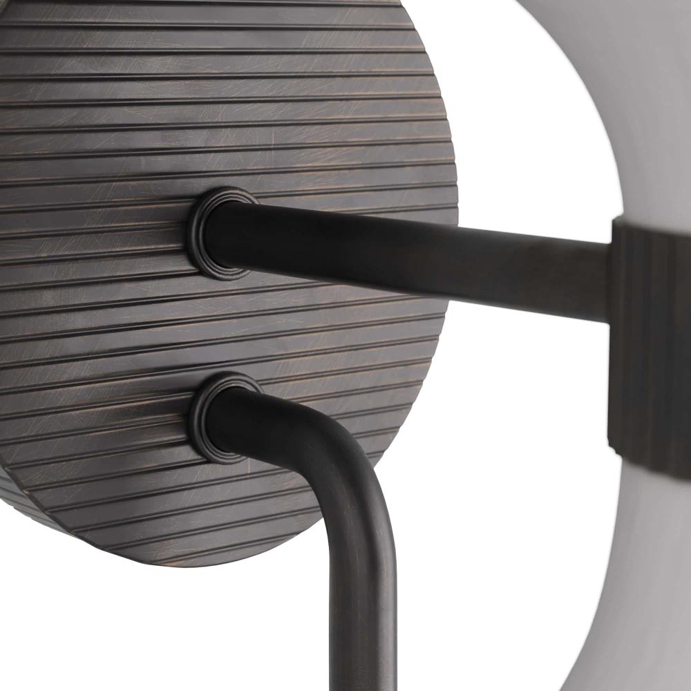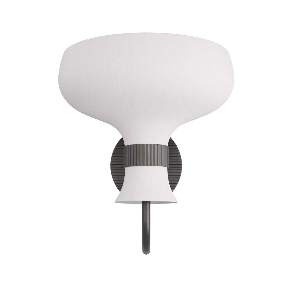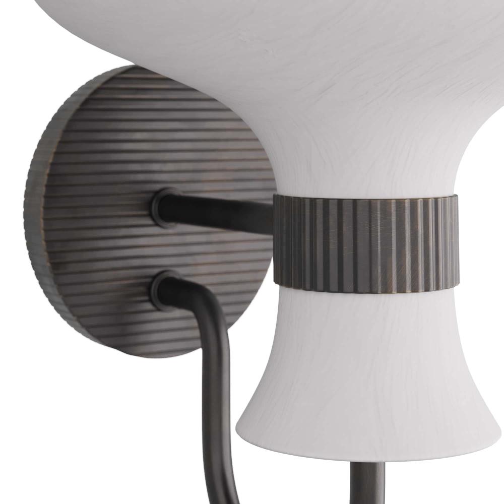A HIGH-CONTRAST MIX OF MATERIALS DRESSES UP THE WESTCLIFF SCONCE AND LENDS MODERN ELEGANCE TO ITS SURROUNDINGS. THE SLEEK, MIDCENTURY-INSPIRED TORCHIERE IS CREATED IN A FRAMEWORK OF BLACKENED IRON, WITH RIBBED CLAMP DETAILING AND A ROUND BACKPLATE. GRACEFUL, TULIP-SHAPED SHADES IN WHITE GESSO DIRECT LIGHT UPWARDS. FINISH WILL VARY. DAMP-RATED, ALTHOUGH LIMITED COVERED OUTDOOR CONDITIONS MAY AFFECT FINISH.