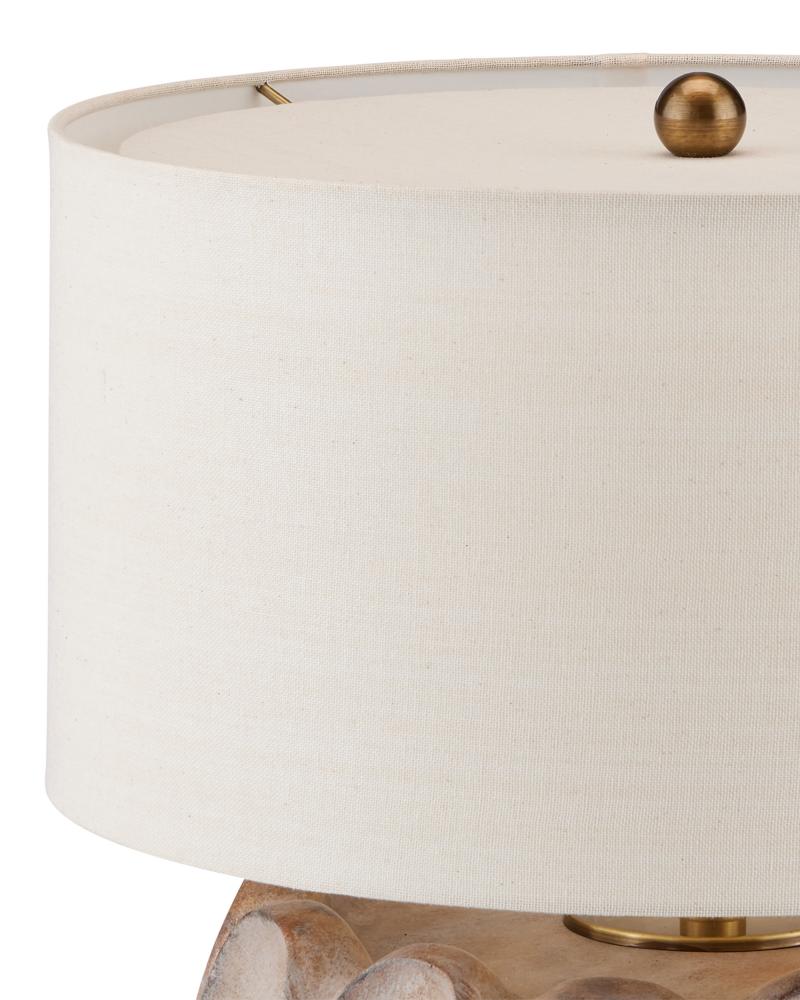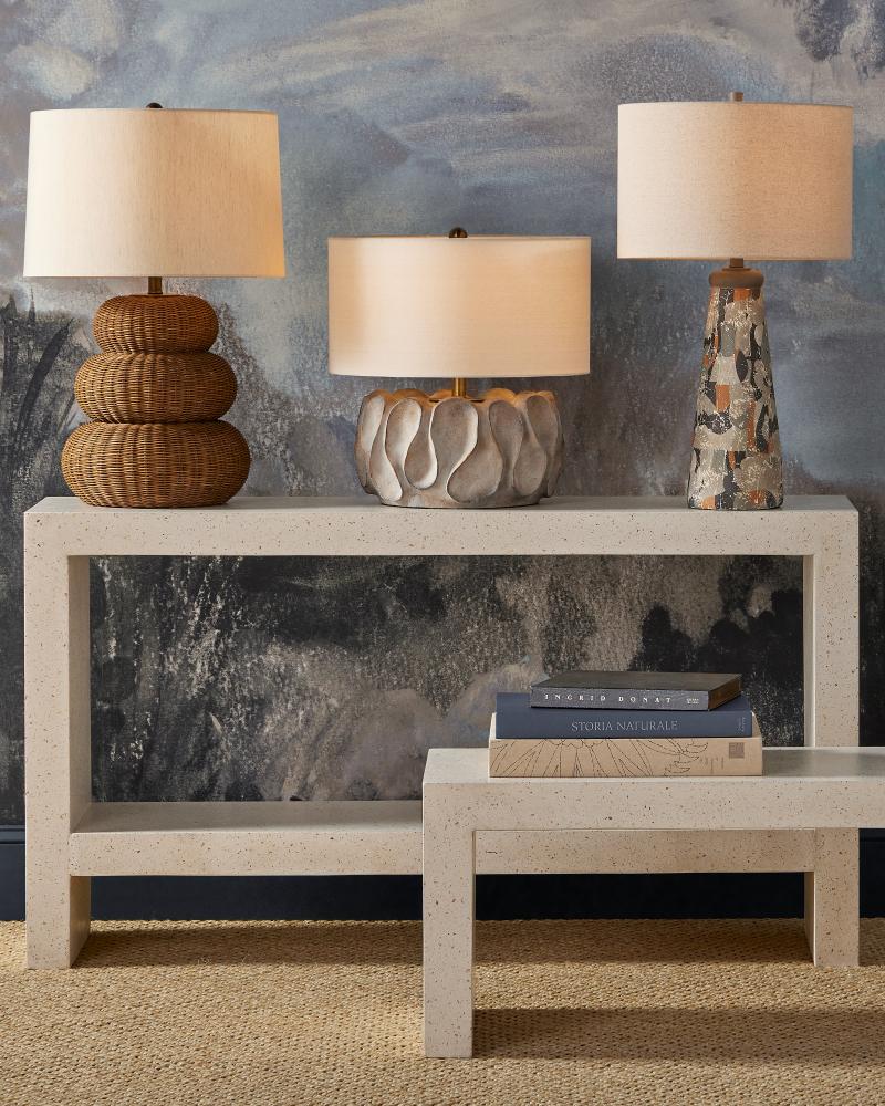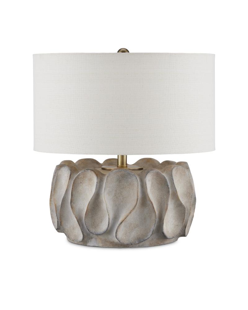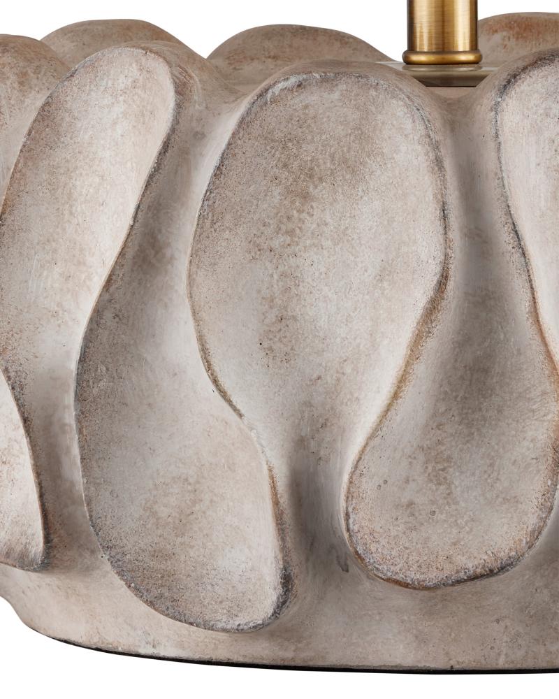 The Weststrand Table Lamp has a flowing shape packed with personality. The spoon-like swells pressed into cast concrete create an artistic statement because they are far from uniform, which adds interest to the squashed shape of the rugged-looking gray lamp. The surface has a wonderful texture to it, and the light antique brass finish on the hardware draws out similar tones along the surface of the cement.