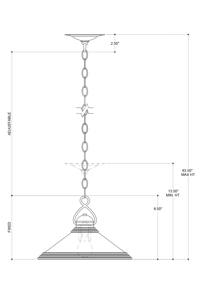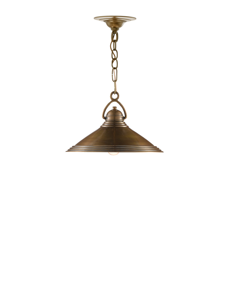 The Weybright Pendant references vintage industrial style. Made of brass in a vintage brass finish, the design notes that make this brass pendant so special include the sophisticated shape of the hook that fastens the fixture to the chain and the ribbed details on the shade. Adjustable from 13.5" to 83.5" with use of included chain/rod kit/cable. If your space calls for a longer drop, additional chain/rods/cable is available for purchase.