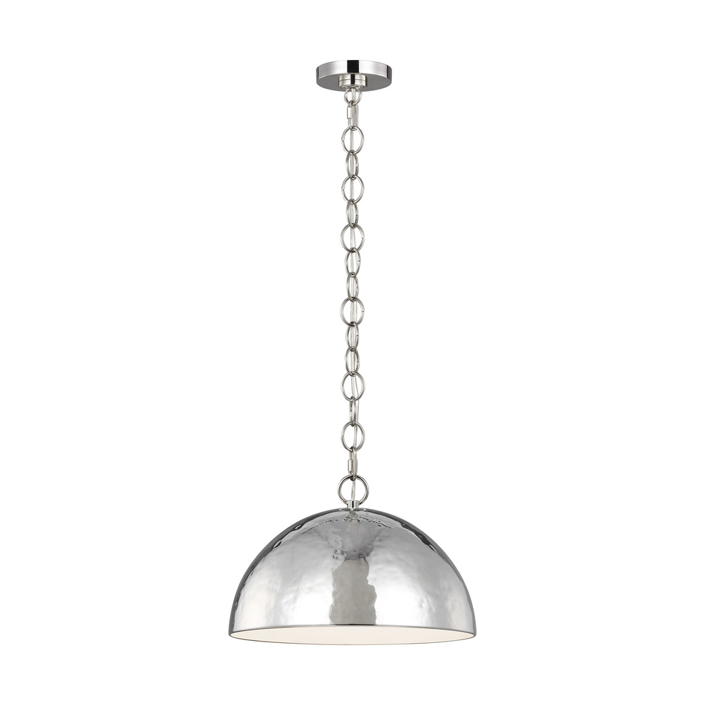 Oversized pendants offered in two sizes and two finishes: Burnished Brass and Polished Nickel