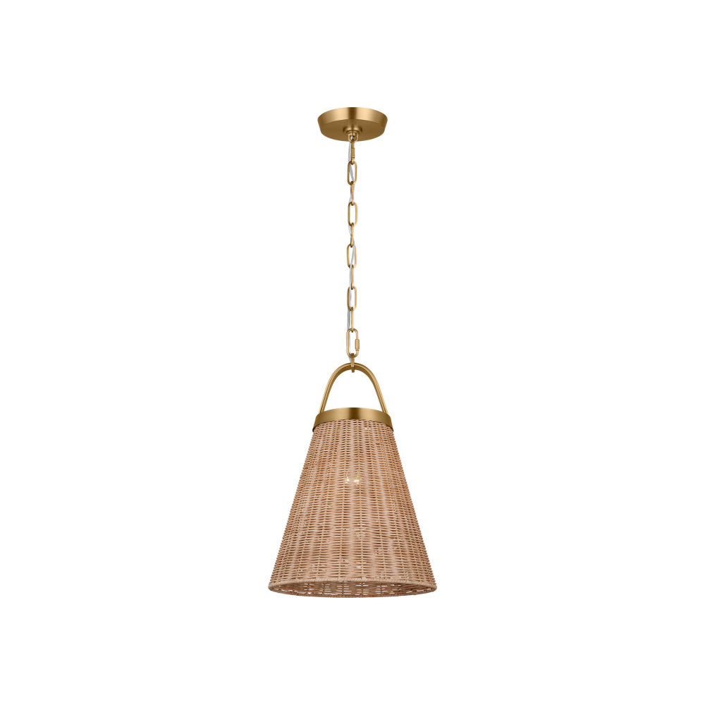 Handwoven with natural rattan, Whitby adds a beautiful texture to your home. The natural woven conical shades are mounted to an elegant circular metal cuff with an arched yoke suspended from the metal chain. The wire is hidden within the arched yoke giving a clean appearance to the overall form. Whitby works well in a group above a dining table or kitchen island, by itself, or in any room that could use a casual touch.
