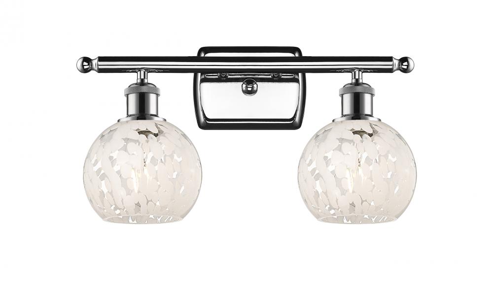 White Mouchette - 2 Light - 16 inch - Polished Chrome - White Mouchette Shade - Bath Vanity Light