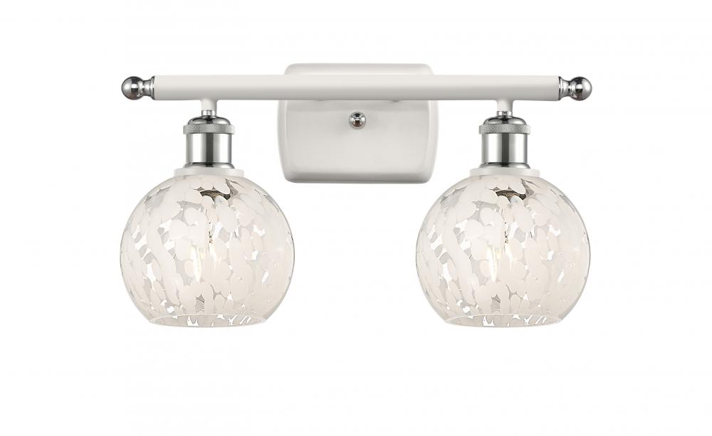 White Mouchette - 2 Light - 16 inch - White Polished Chrome - White Mouchette Shade - Bath Vanity Light