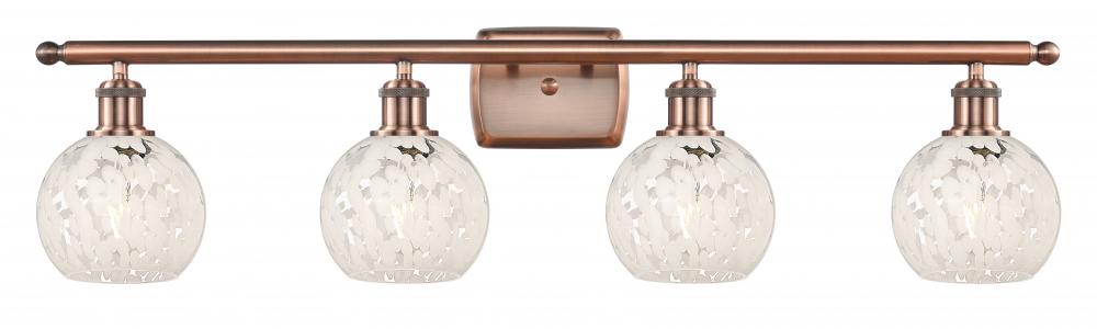 White Mouchette - 4 Light - 36 inch - Antique Copper - White Mouchette Shade - Bath Vanity Light