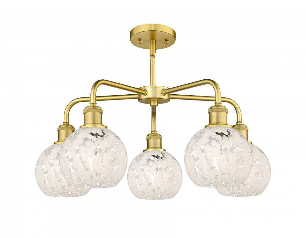 White Mouchette - 5 Light - 24 inch - Satin Gold - Chandelier