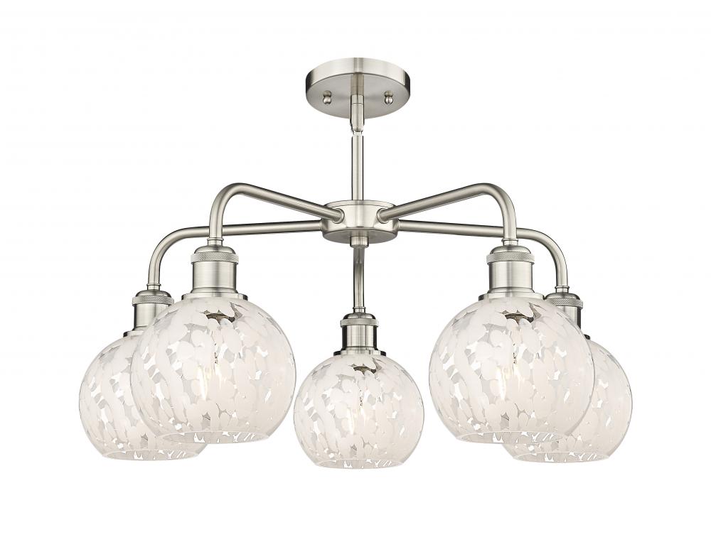 White Mouchette - 5 Light - 24 inch - Satin Nickel - Chandelier