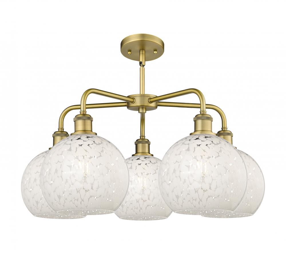 White Mouchette - 5 Light - 26 inch - Brushed Brass - Chandelier
