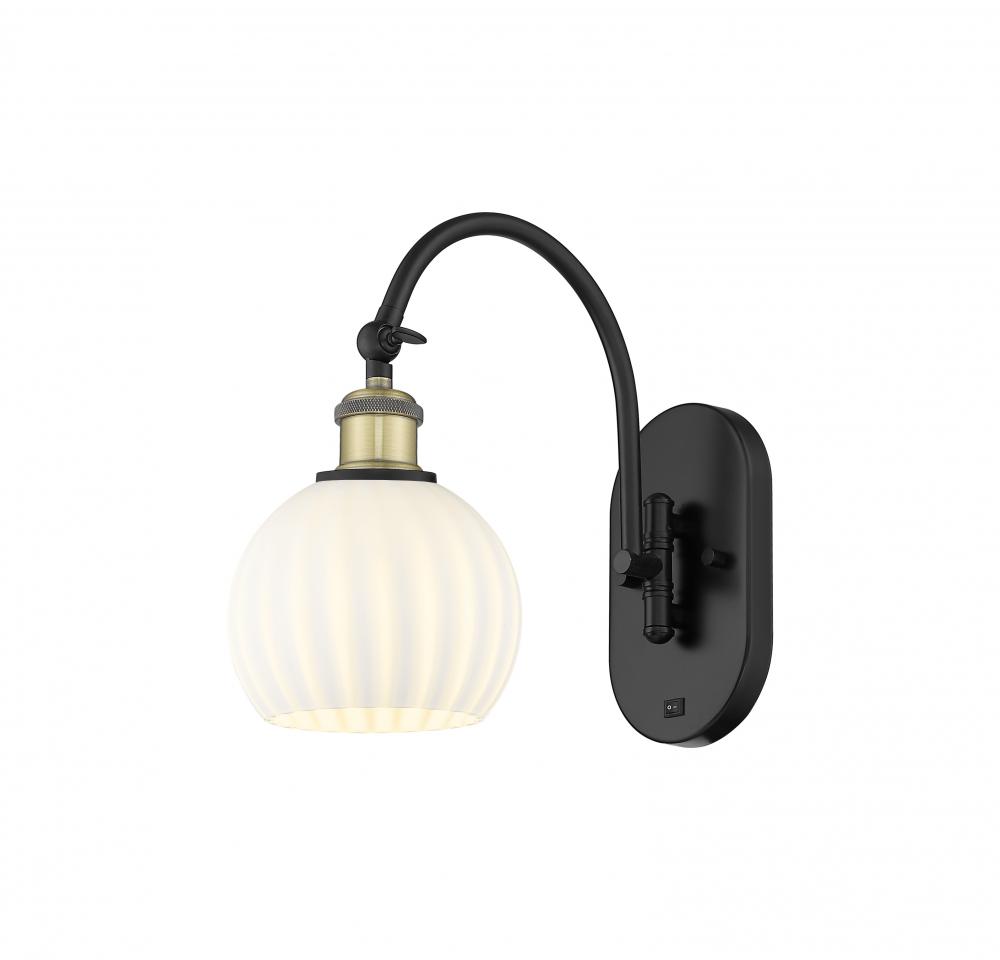 White Venetian - 1 Light - 6 inch - Black Antique Brass - White Venetian Shade - Adjustable Swing Arm