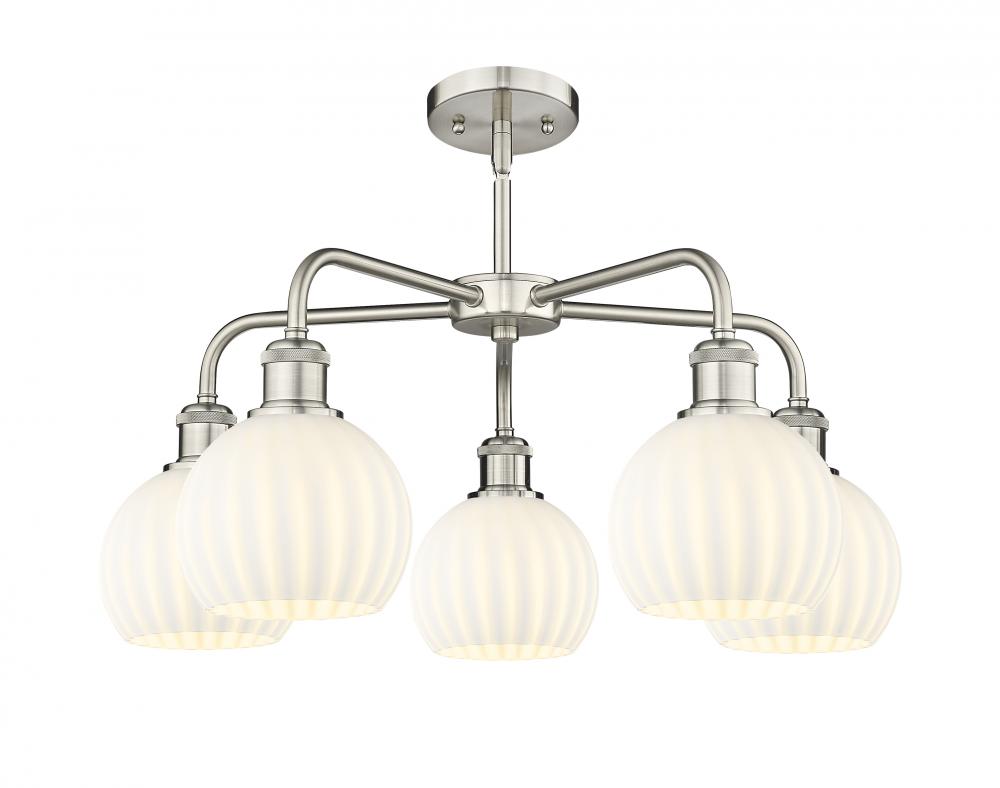 White Venetian - 5 Light - 24 inch - Satin Nickel - White Venetian Shade - Chandelier